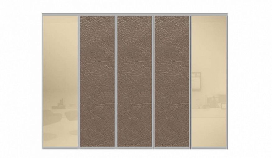 Двери-купе Лилит 15 BMS объединены в готовый фасад для гардеробной, выполненный в нейтральной бежевой гамме. Створки в пленке Оракал скомбинированы с глухими полотнами в текстурной экокоже и заключены в прочные рамы из алюминиевого профиля. Пятидверный раздвижной фасад станет отличным выбором для монтажа просторной гардеробной в любом из помещений дома, помогая сохранить полезную площадь. Купить двери-купе Лилит 15 BMS приглашаем к нам в интернет-магазин.