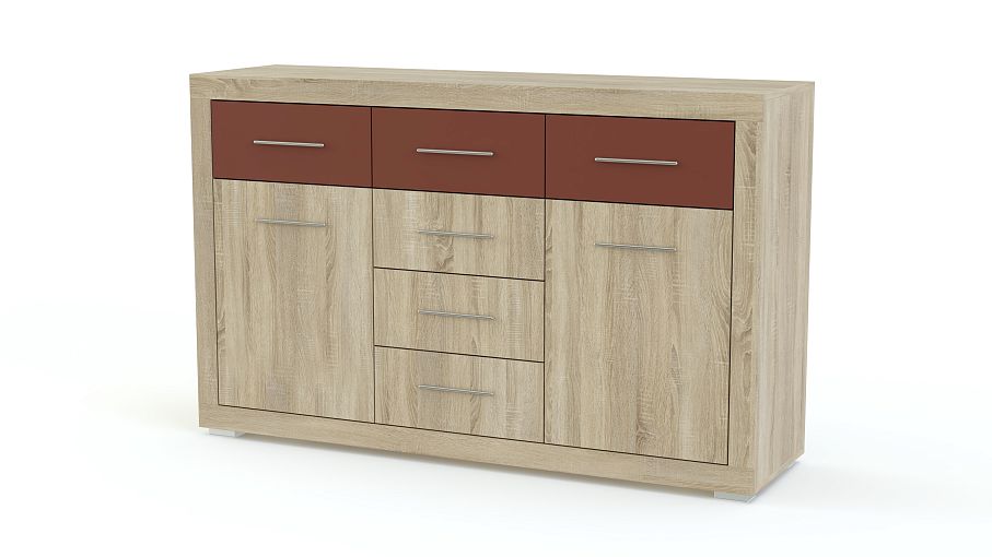 Комод Астера 15 МДФ BMS – это крупногабаритная модель современного дизайна, которая гармонично дополнит интерьер просторной спальни или гостиной. Под широкой столешницей располагаются шесть выдвижных ящиков и два распашных отделения с полками, удобных для хранения постельного белья, одежды, бытовых мелочей и размещения предметов декора. Спокойные древесные тона разбавлены акцентами ярких терракотовых вставок. Купить комод Астера 15 МДФ BMS вы сможете по выгодной цене в нашем интернет-магазине.