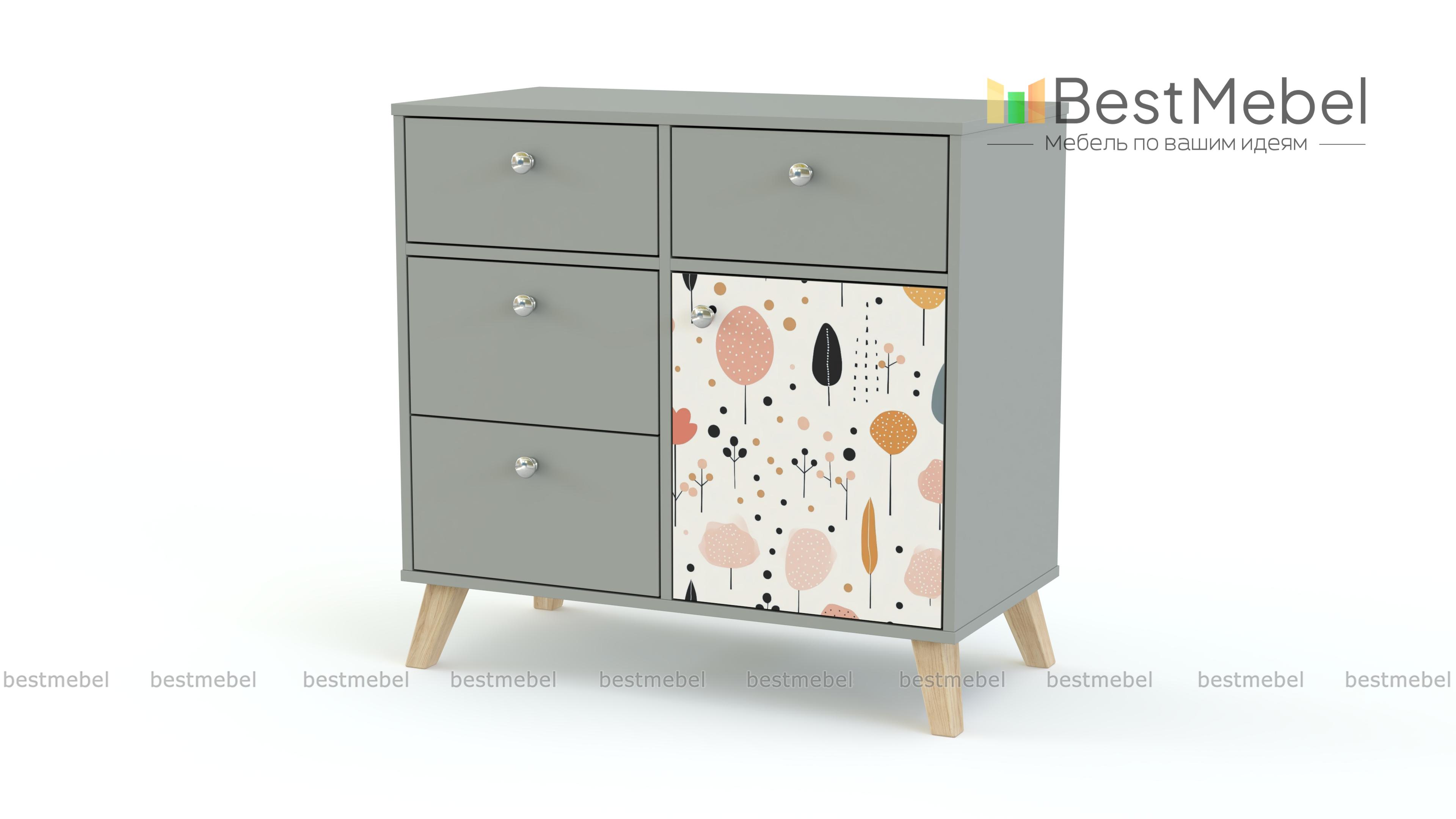Комод Эльза 12 BMS поможет сохранить порядок в детской и украсит интерьер. Четыре выдвижных ящика и закрытая секция с полкой отлично подходят для хранения мелких вещей, а высокие ножки позволяют легко проводить уборку. Тумба выполнена из качественной ЛДСП с древесным рисунком, фасад распашной дверцы выделен ярким акцентом — стойким принтом в технике фотопечати. Купить комод Эльза 12 BMS с учетом необходимых размеров вы сможете по доступной цене в нашем интернет-магазине.