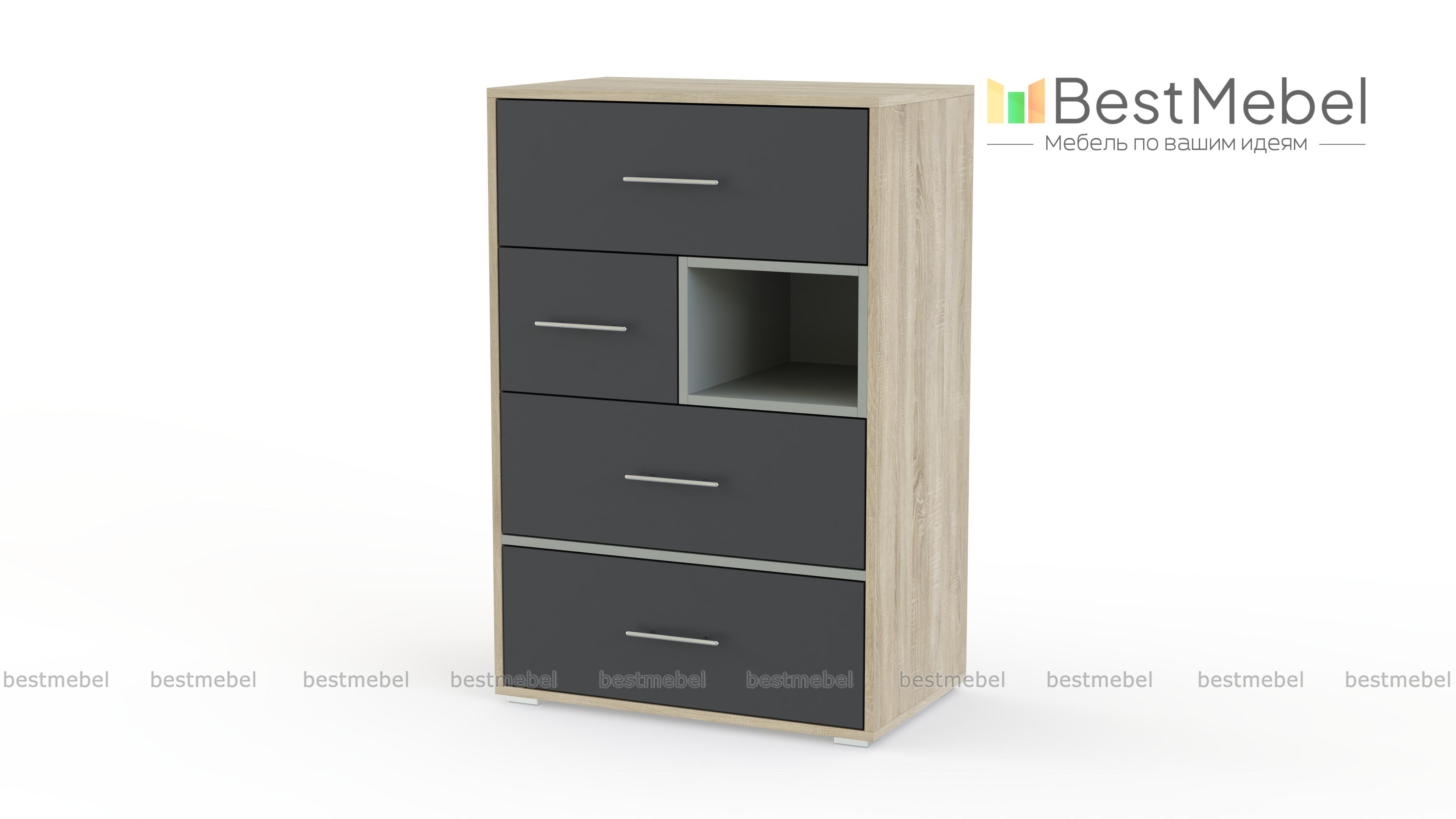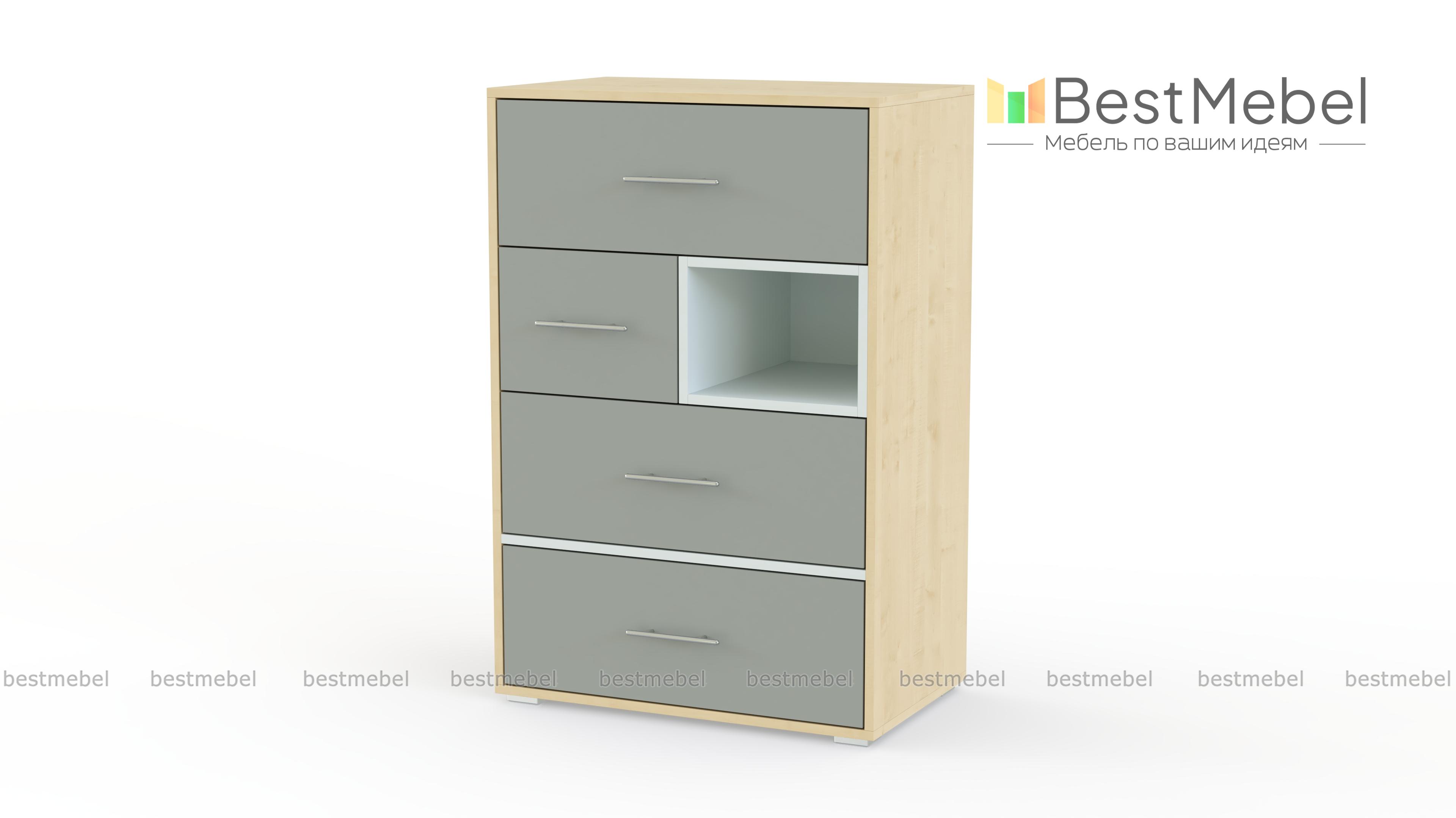 Комод Эван K-34 BMS предназначен для меблировки молодежных комнат и отличается современным дизайном и высокой функциональностью. Четыре классических выдвижных ящика дополняет выделенная другим цветом ниша, превращая удобную систему хранения для белья и одежды в стильный интерьерный акцент. Компактный комод может дополнить другие предметы серии или использоваться в интерьере независимо. Купить комод Эван K-34 BMS, который поможет легко поддерживать в комнате порядок, вы сможете с помощью нашего интернет-магазина.