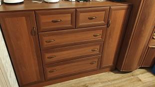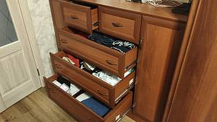 Хороший комод, собирается легко. Ящики выдвигаются плавно, пользуемся 2 месяца, всё устраивает. И по качеству и по дизайну всё ок! Изготовили в срок, как и договаривались, с доставкой тоже не подвели. Вообще фирма нравится, не первый раз заказываем здесь мебель.