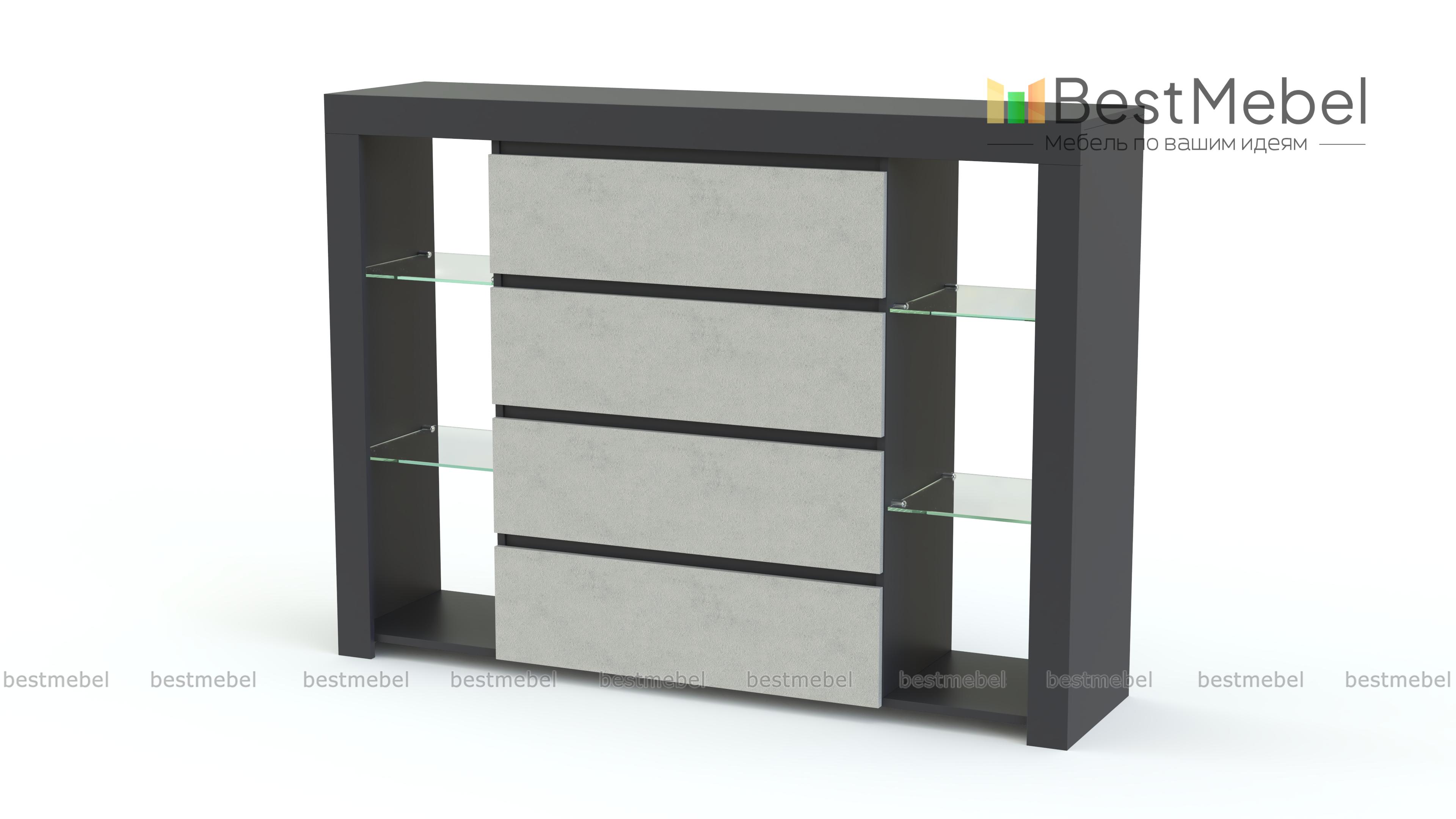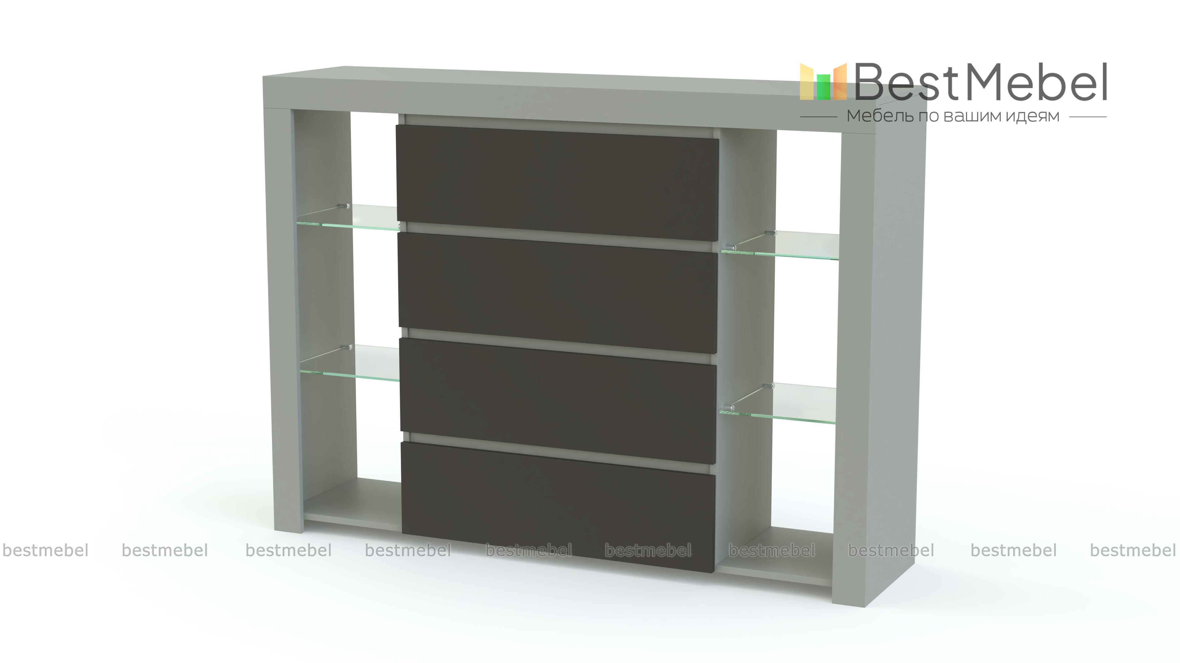 Роскошная модель обладает всеми достоинствами современной мебели. Комод Милан 4-SZ BMS максимально лаконичен по форме, эргономичен и выполнен из материалов высокого качества. Выдвижные ящики без ручек с матовыми фасадами соседствуют с открытыми стеклянными полками. Редкая вместительность, стильный вид и доступная цена обеспечивают комоду неизменную популярность у поклонников минимализма.