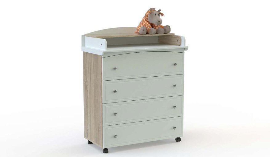 Комод пеленальный Glam 1 BMS с цветным фрезерованным фасадом отличается ярким дизайном и мобильностью. Четыре выдвижных ящика, один из которых с арочным верхом, разместят одежду, постельное белье, игрушки и необходимые под рукой гигиенические средства. Пеленальная поверхность с откидным столиком надежно защищена скругленными бортиками по бокам и вдоль задней стенки. Купить комод пеленальный Glam 1 BMS вы сможете в нашем интернет-магазине, подобрав наиболее подходящее цветовое решение.