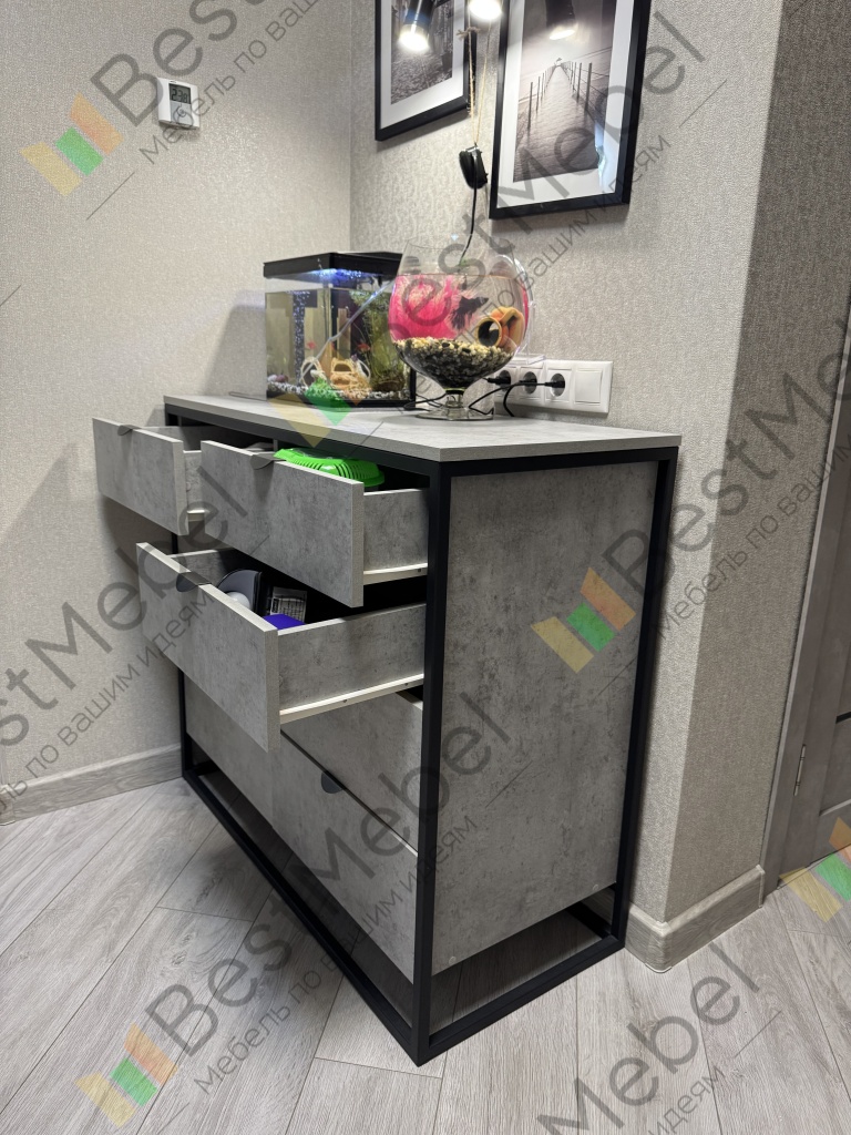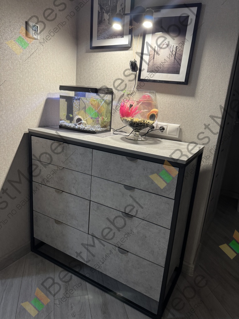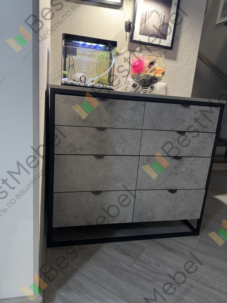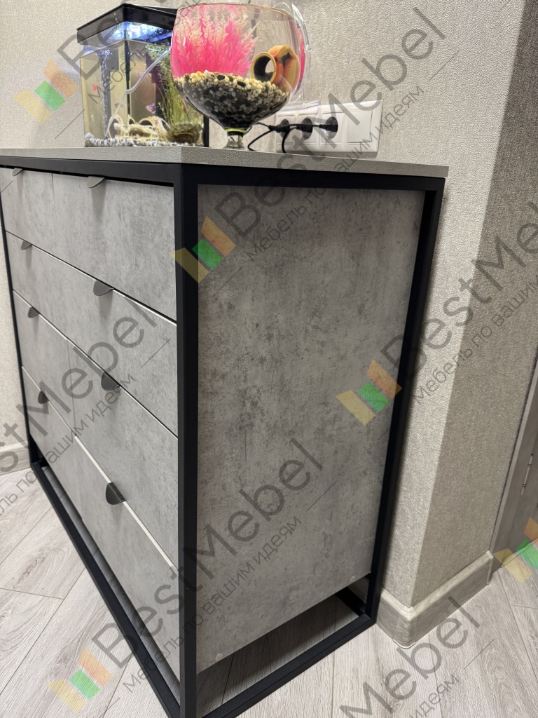 Комод Примула 4 BMS – это простота и функциональность в сочетании с трендовым дизайном в индустриальном стиле. Выполненный из износостойкой ламинированной плиты с имитацией бетона, комод усилен прочным металлическим каркасом на высоком основании. Четыре больших и четыре малых выдвижных ящика, оснащенных удобными торцевыми ручками, помогут легко поддерживать порядок в вещах. Купить комод Примула 4 BMS вы сможете в нашем интернет-магазине, подобрав цвет и размеры.