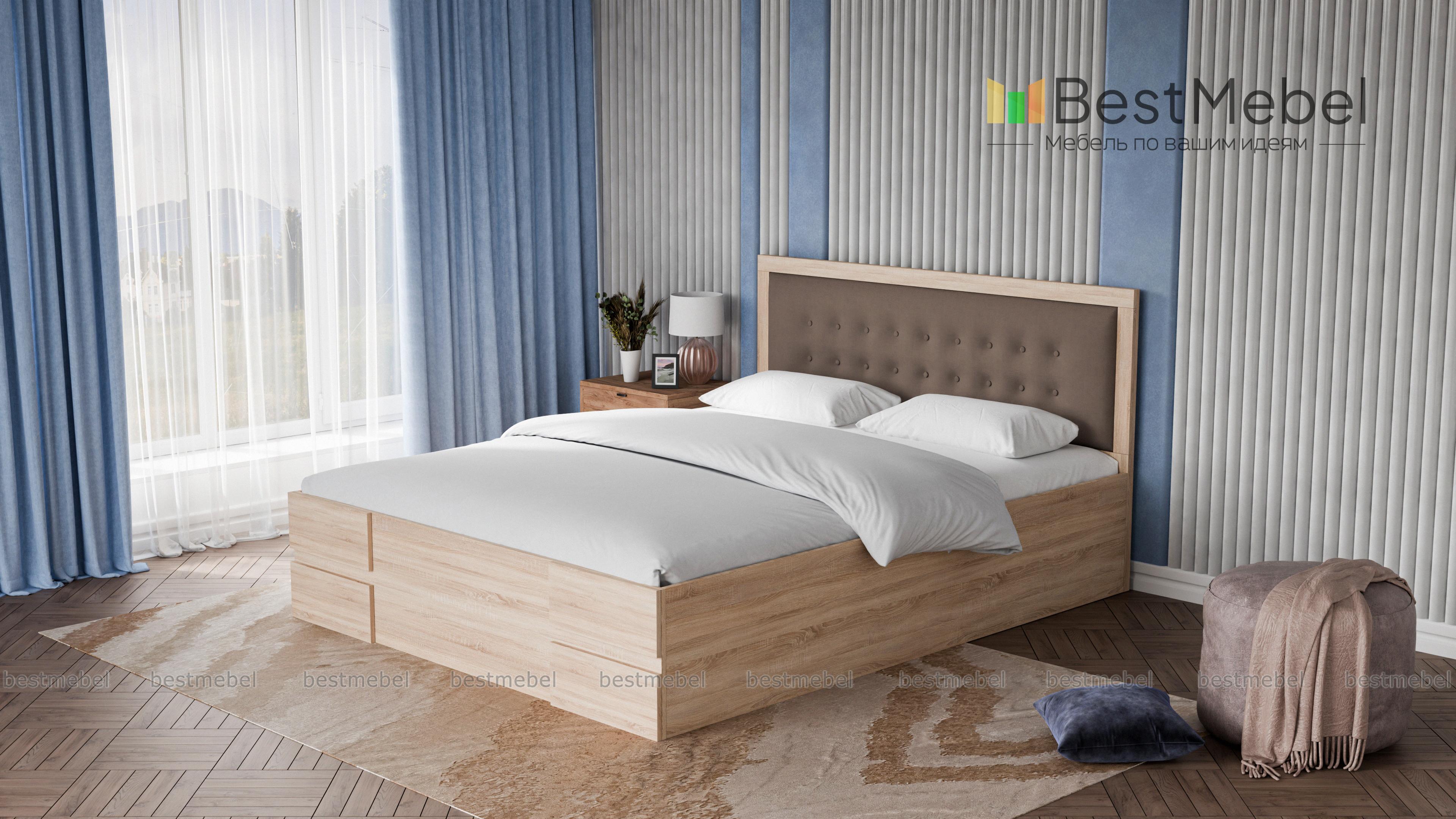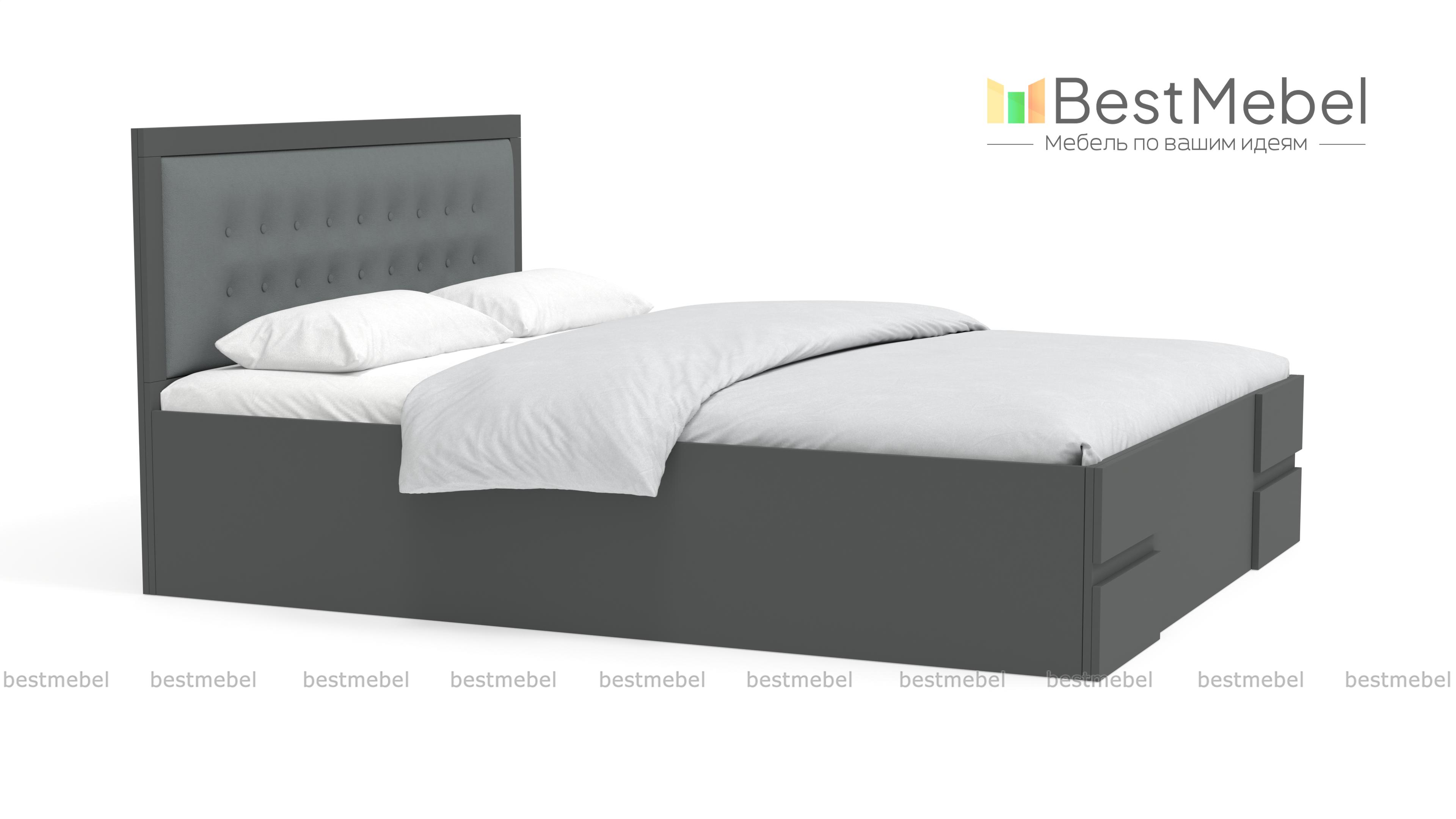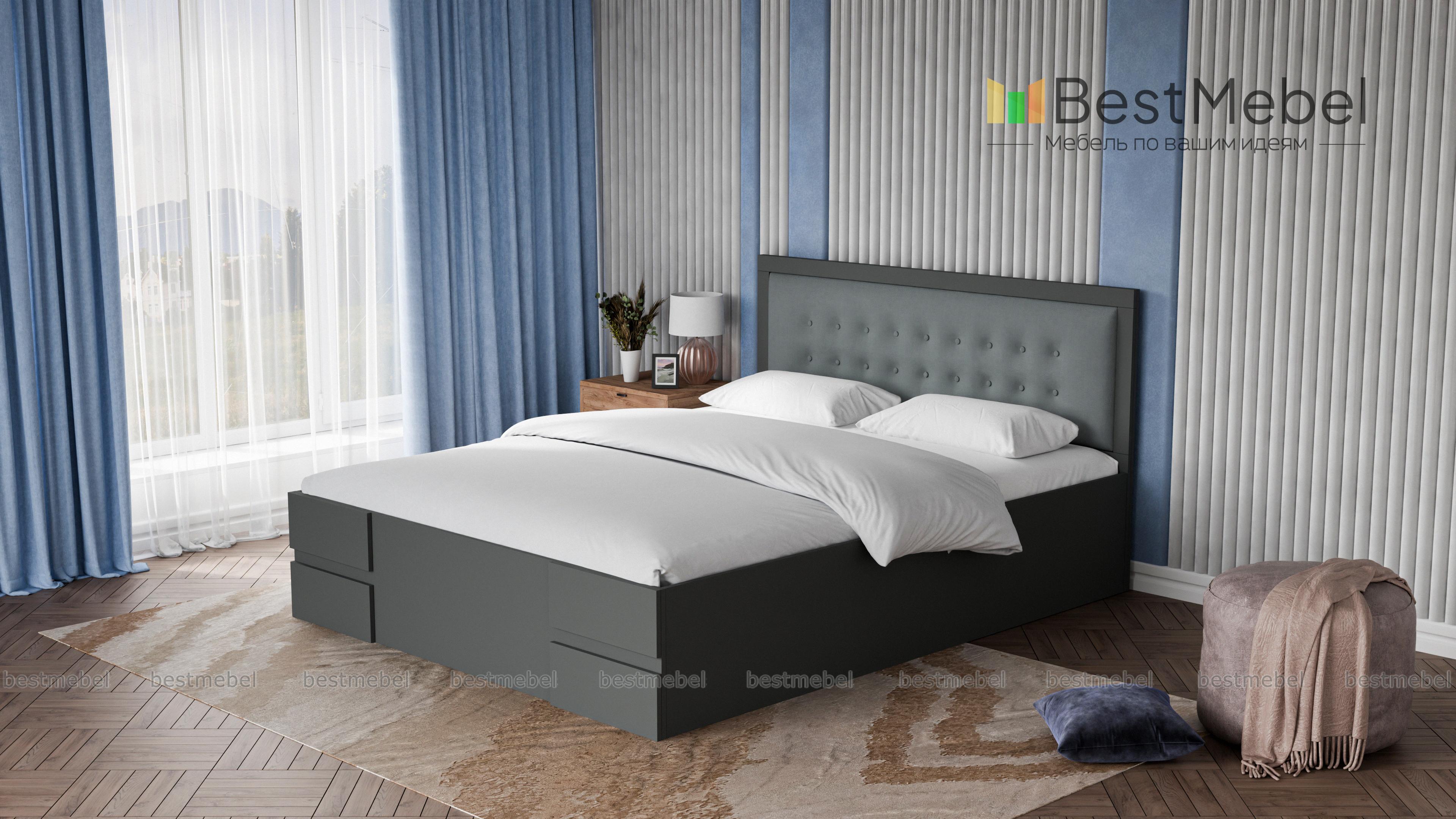 Кровать Кармен BMS создана в стиле современной классики для поклонников комфорта и элегантности. Сочетание ламинированной плиты темного оттенка и серой ткани в тон с декоративной стяжкой и пуговицами придает модели презентабельный внешний вид. Высокое прямое изголовье удобно и эстетично, в изножье закрытого массивного каркаса - прямоугольные накладки в тон. Купить кровать Кармен BMS вы сможете в нашем интернет-магазине с выбором размеров и цветовой гаммы.