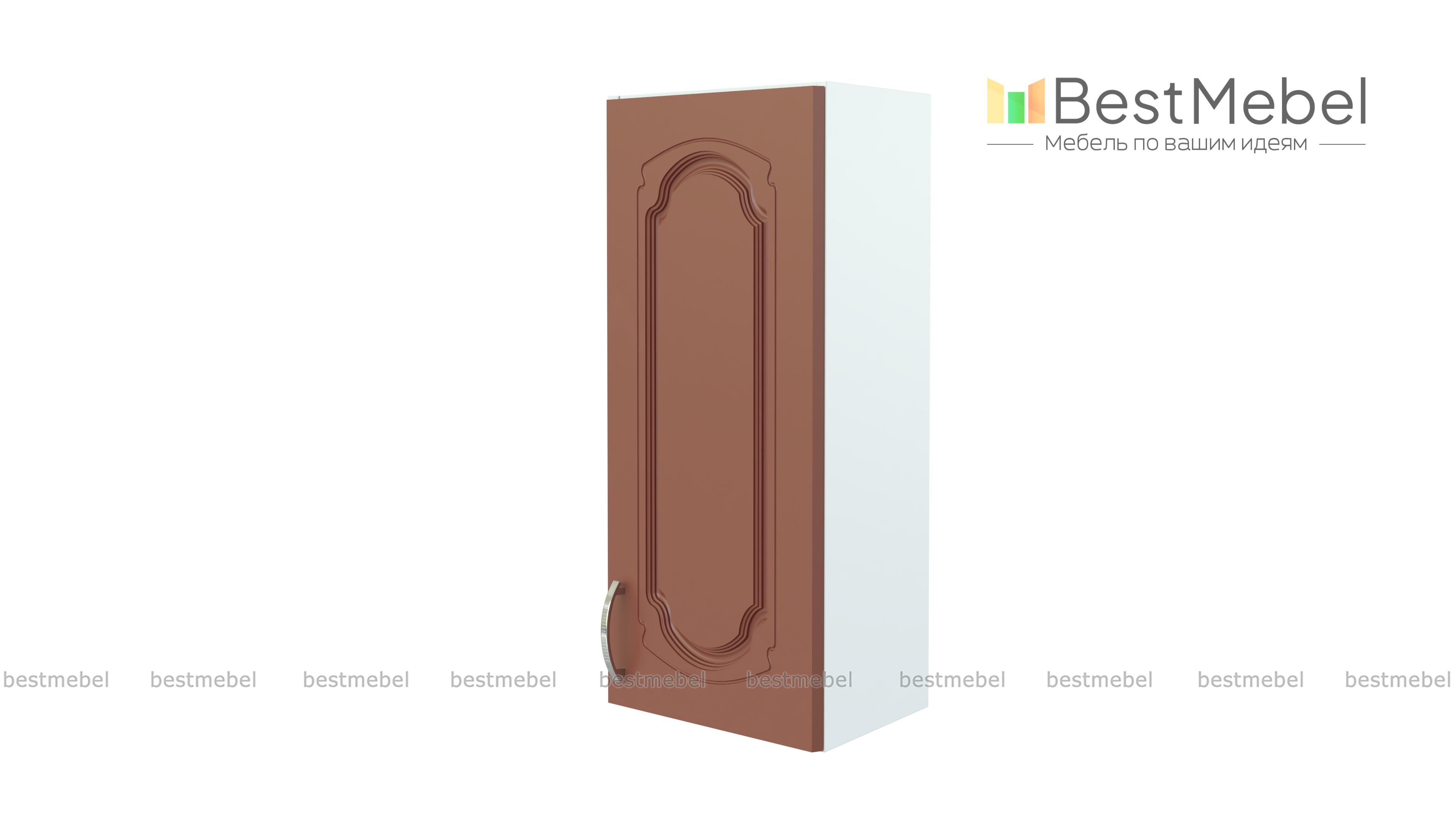 Шкаф верхний торцевой Настя BMS поможет сделать кухонный гарнитур более эргономичным. Угловой шкафчик имеет компактные размеры и отличную вместительность, а практичная конструкция позволит сэкономить пространство. За распашной дверцей располагается внутреннее отделение с полкой для бытовых мелочей, фасад в терракотовых тонах украшен изящной фрезеровкой в классическом стиле. Купить шкаф верхний торцевой Настя BMS для эффектного и функционального интерьера приглашаем в наш интернет-магазин.