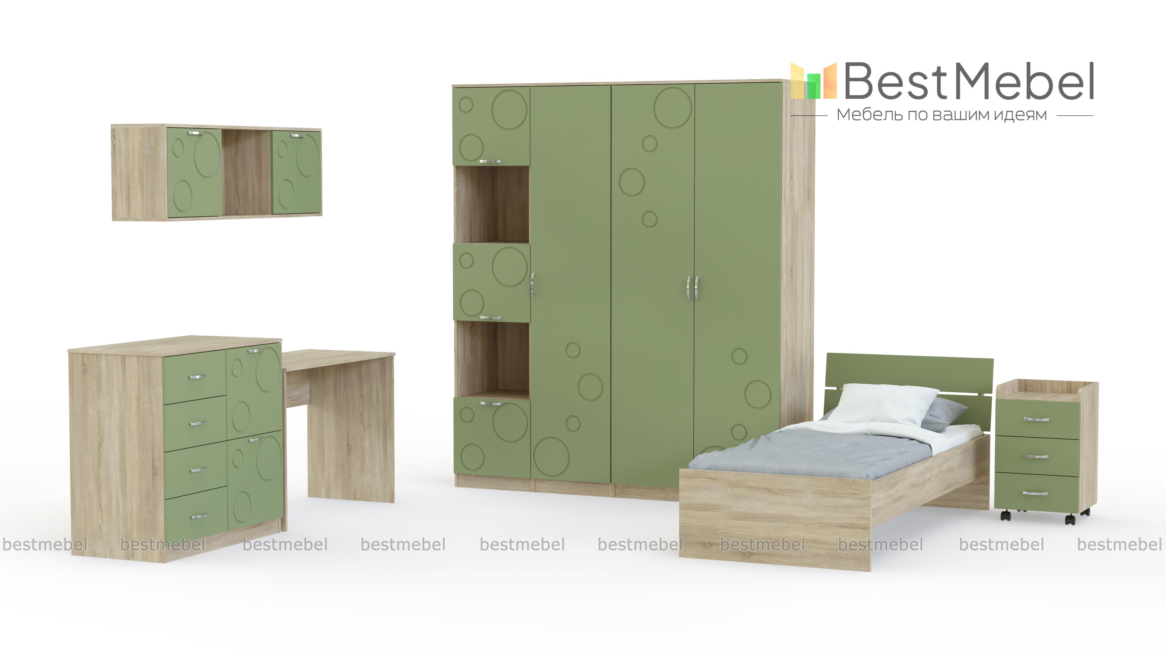 Детская Спринт 1-11 BMS, выполненная в сочетании светлых оттенков под массив дерева и ярких аквамариновых фасадов, непременно понравится детям и родителям. Модель станет отличным вариантом для комнаты школьника, разместит все необходимое и создаст комфортную для отдыха и учебы атмосферу. В комплекте кровать с прикроватной тумбой, письменный стол, вместительный комод, навесная полка с открытыми и глухими отделениями, двухдверный шкаф и два пенала – бельевой и комбинированный. Купить детскую Спринт 1-11 BMS вы сможете недорого в нашем интернет-магазине, подобрав оптимальные параметры.
