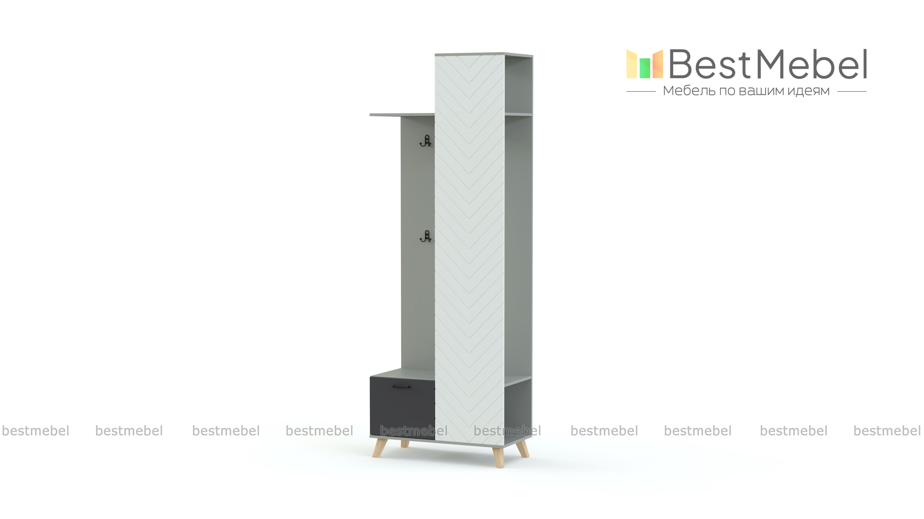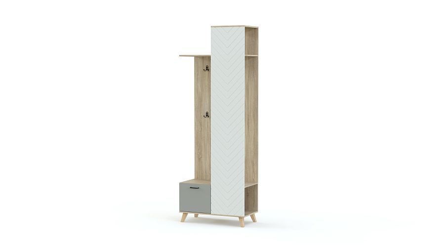 Прихожая Династия 14 BMS по максимуму использует доступное пространство и компактно разместит одежду, обувь и аксессуары. Многофункциональная конструкция объединила открытую вешалку с крючками и штангой, полки в верхней и нижней части и распашную обувницу. Геометричный дизайн прихожей подчеркивают трендовые древесные оттенки, а стильным штрихом станет сканди-фрезеровка на фасаде. Купить прихожую Династия 14 BMS приглашаем в наш интернет-магазин с возможностью изготовления по индивидуальным размерам.