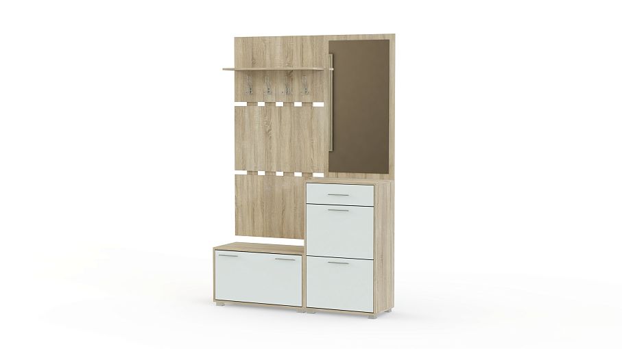 Прихожая Моренго BMS - довольно широкая и вместительная модель для современных интерьеров. С помощью нашей палитры Вы можете заказать изделие не только в однотонном исполнении, но и в комбинированном варианте. Прихожая состоит из основных элементов: 2-х обувных тумб с удобными дверцами, на них имеются специальные кармашки, чтобы хранить обувь аккуратно и все пары были на виду. Кроме них имеется 2 панели: с зеркалом и вешалками, над рядом крючков предусмотрена полка для головных уборов. Купить прихожую Моренго BMS по низкой цене можно на нашем официальном сайте.