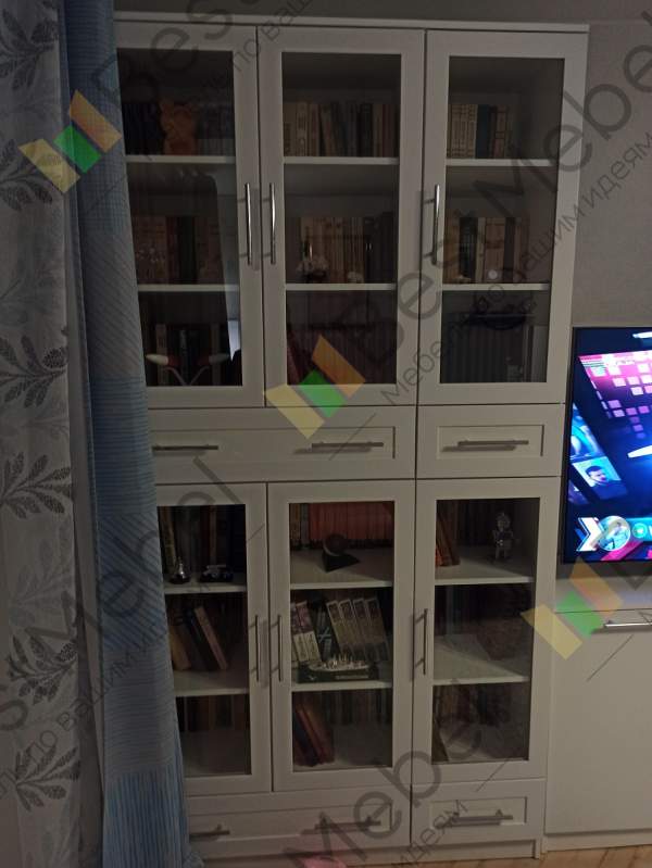 Отличный книжный шкаф. На полках разместилось около полутысячи книг, а в ящиках документы, фотоальбомы и прочие мелочи. Возможность выбрать размеры, конфигурацию и цвет сделал шкаф индивидуальным.