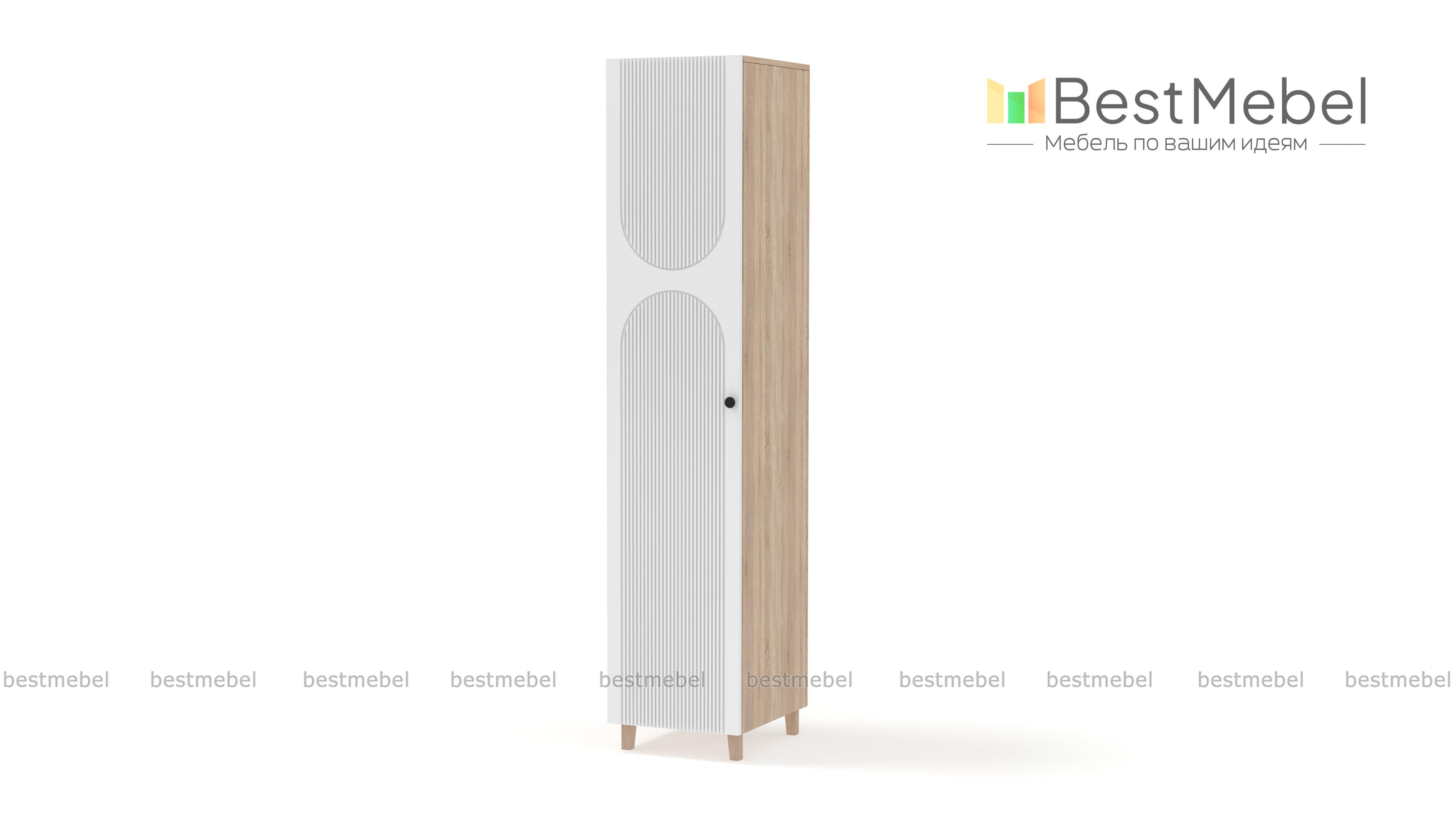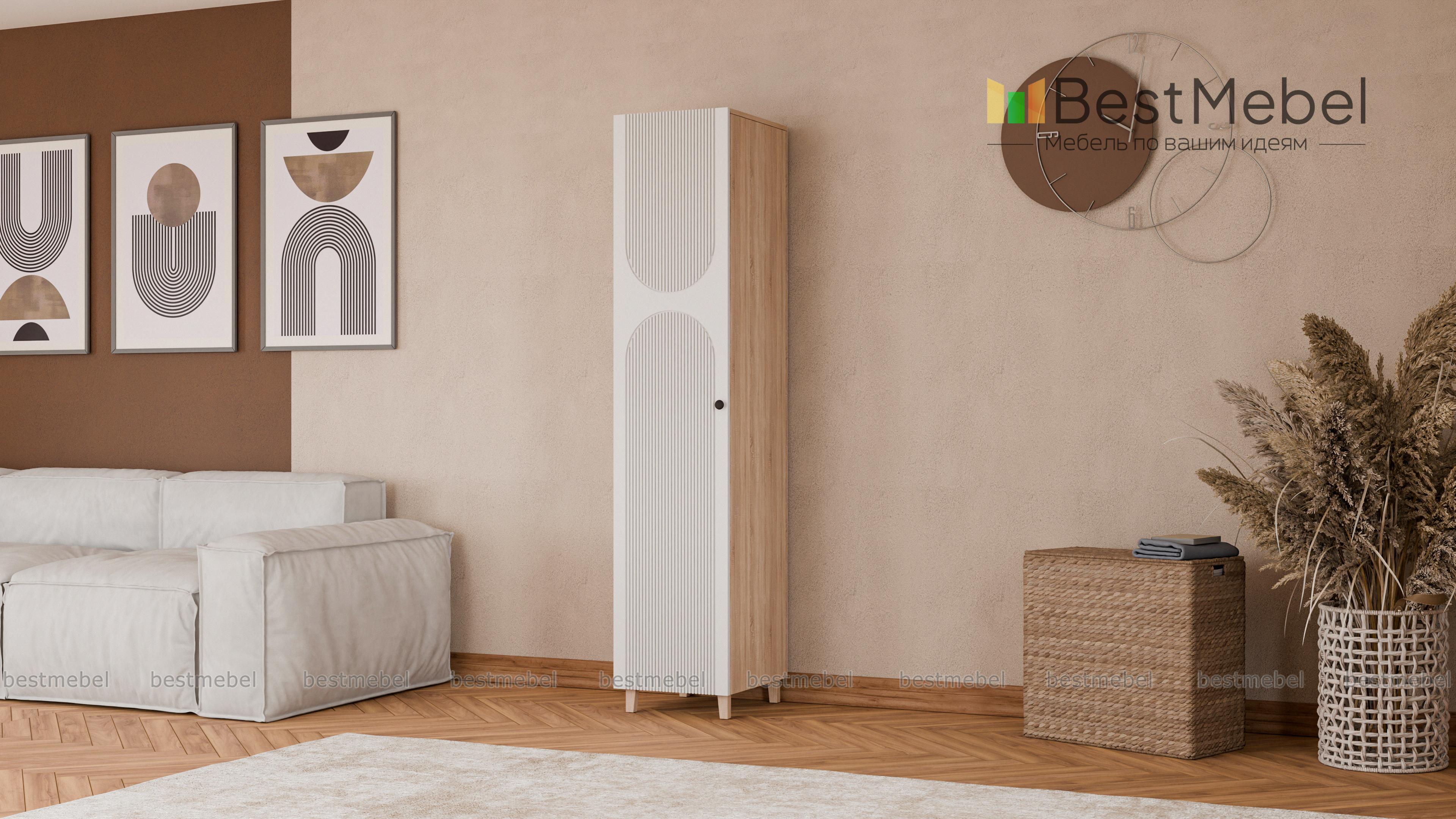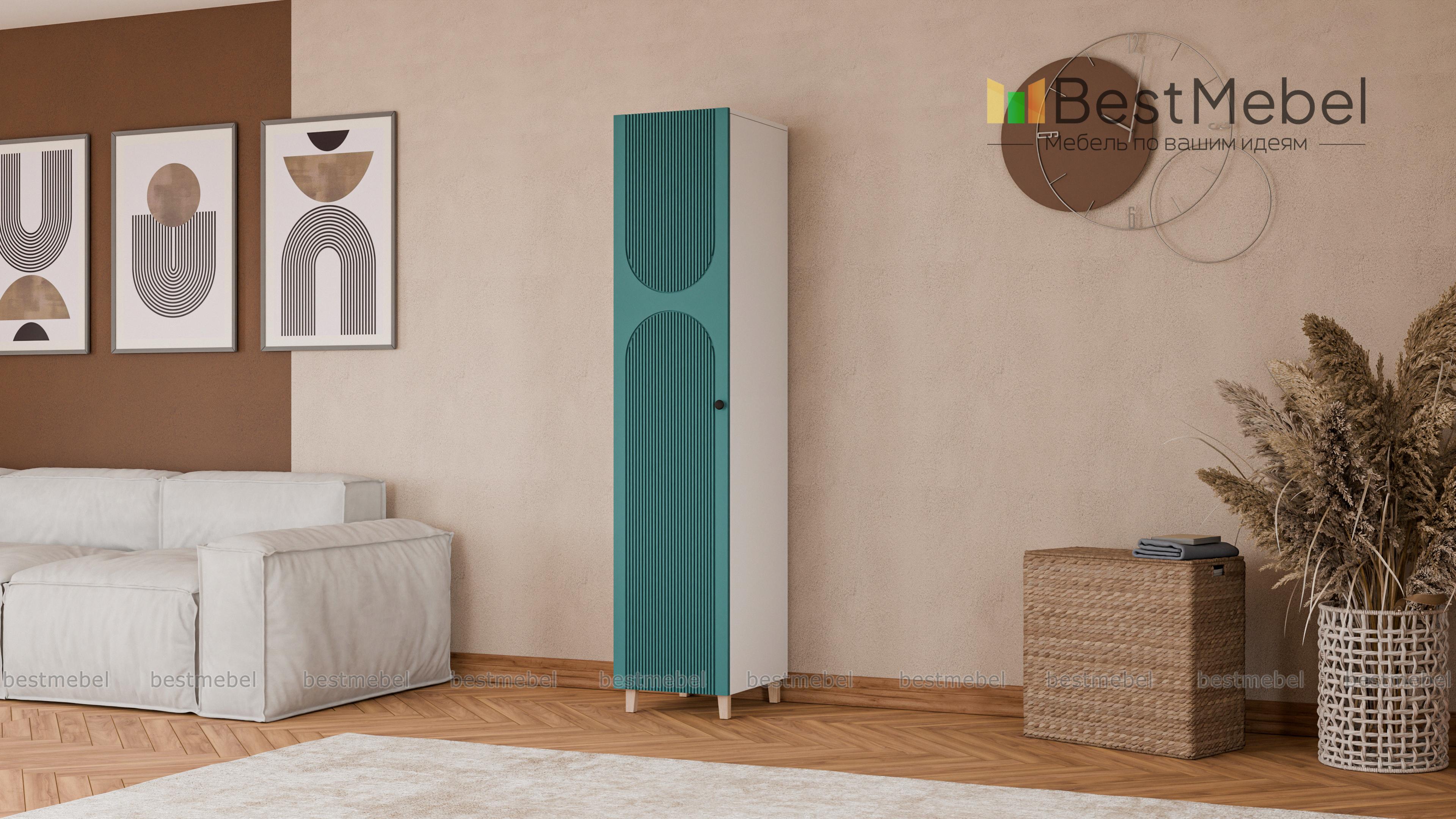 Шкаф-пенал Рене 15 BMS с высокими деревянными ножками одинаково удачно впишется в маленькую гостиную, прихожую или спальный интерьер. Компактная по ширине модель с одной распашной дверцей незаменима для хранения одежды и прочих вещей в ограниченном пространстве. Яркий акцент в интерьере — цветной фасад из плиты МДФ, украшенный стильной фрезеровкой. Купить шкаф-пенал Рене 15 BMS приглашаем в наш интернет-магазин, подобрав необходимые размеры, цвет и фурнитуру.
