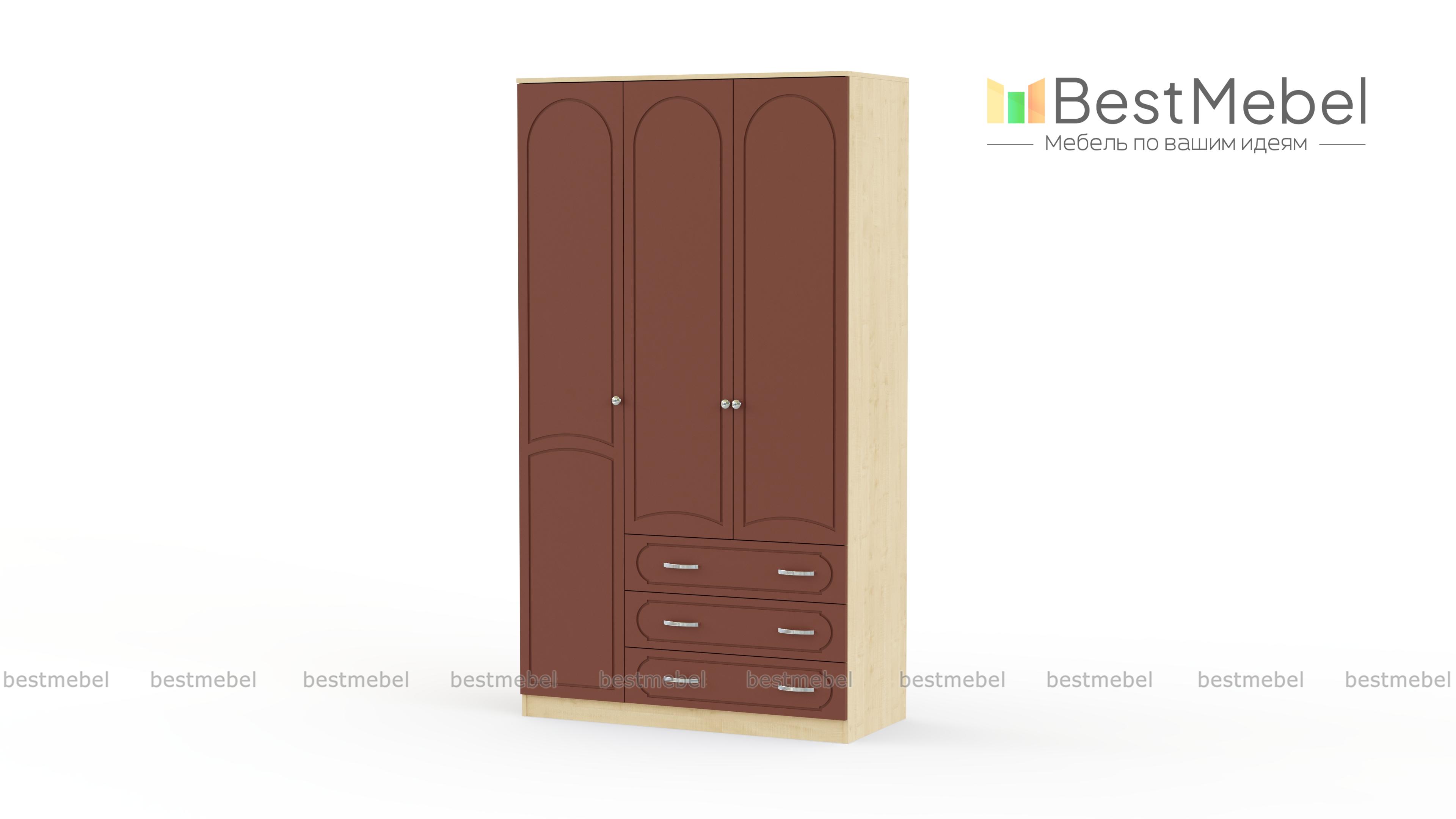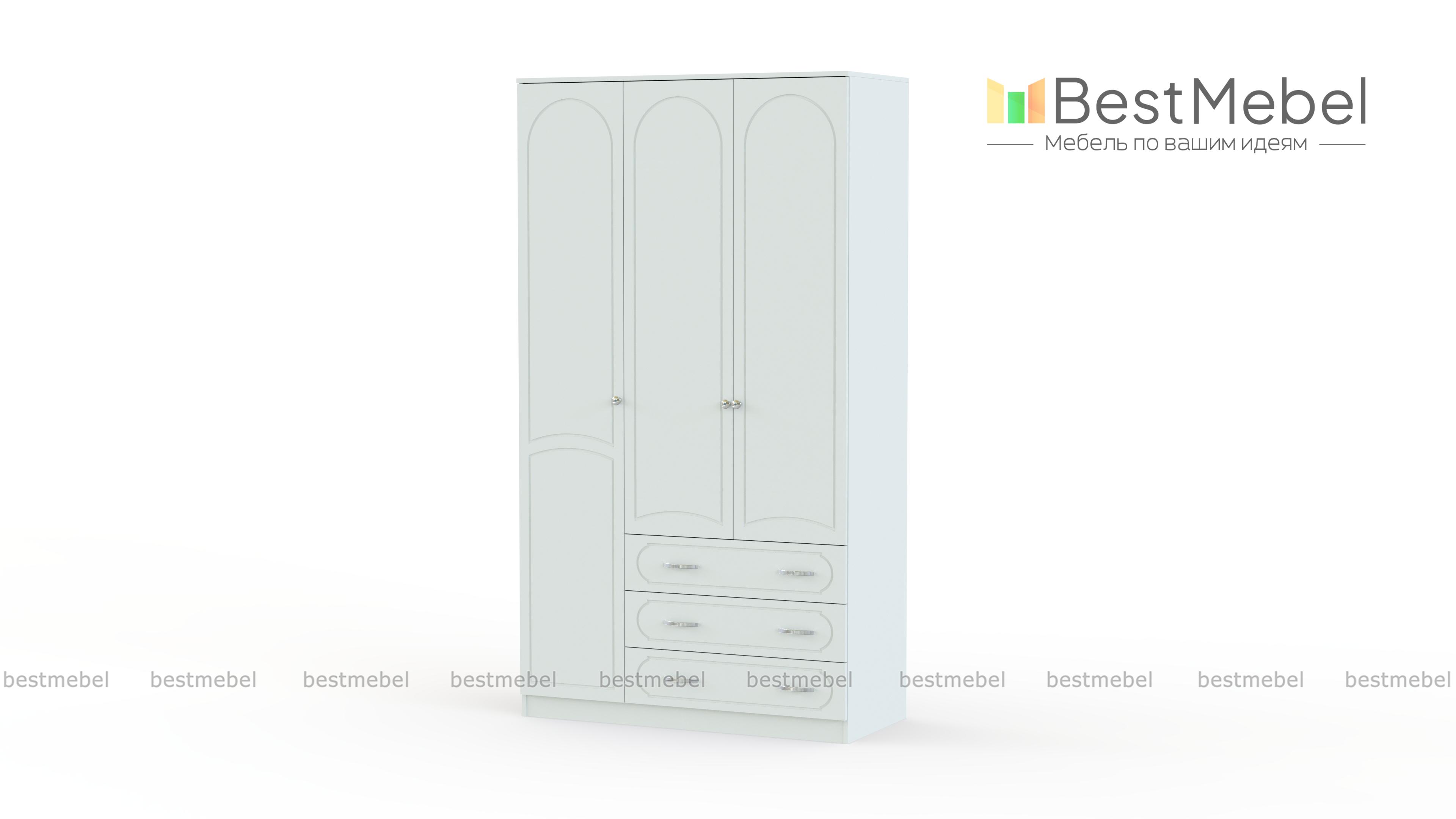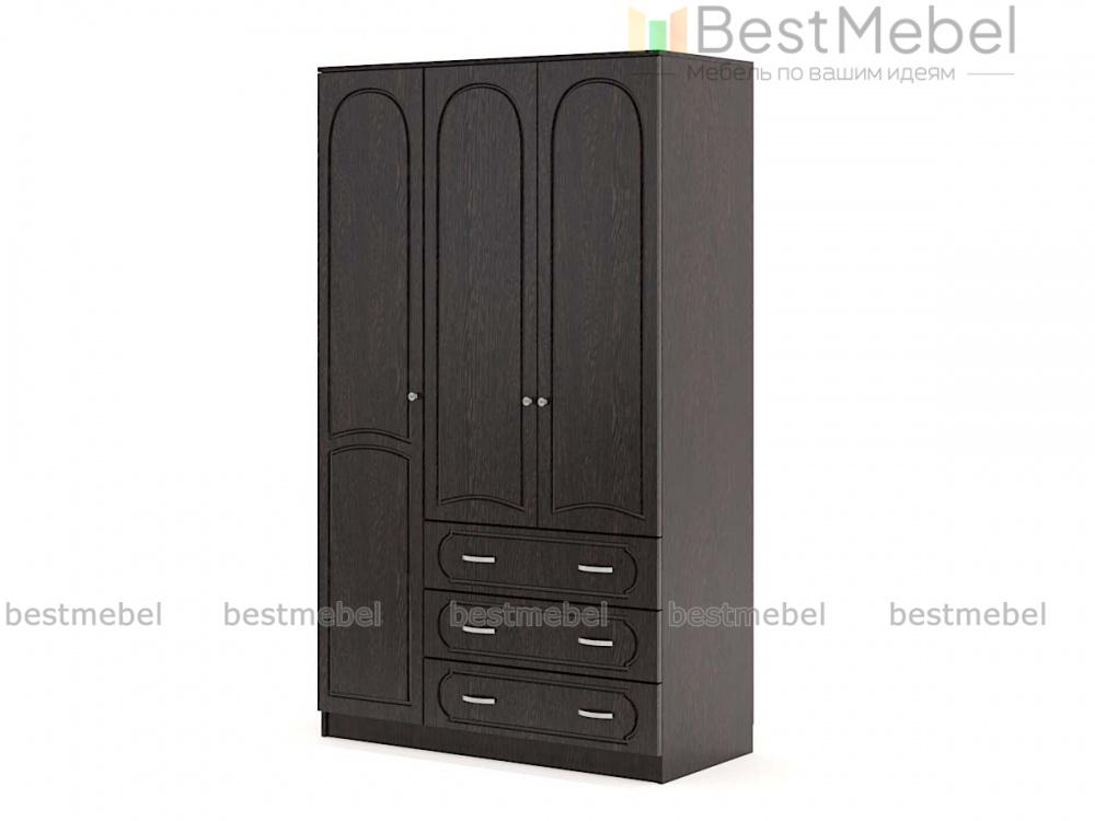 Шкаф Поларис 3.3 BMS объединил функции гардероба и комода для рациональной организации пространства. Платяное отделение дополняет секция с полками, а также три широких выдвижных ящика для хранения постельного белья и мелкого трикотажа. Выразительный дизайн в неоклассическом стиле создают оригинальная арочная фрезеровка фасада и темная палитра. Купить шкаф Поларис 3.3 BMS для меблировки прихожих и спален вы сможете на сайте нашего интернет-магазина.