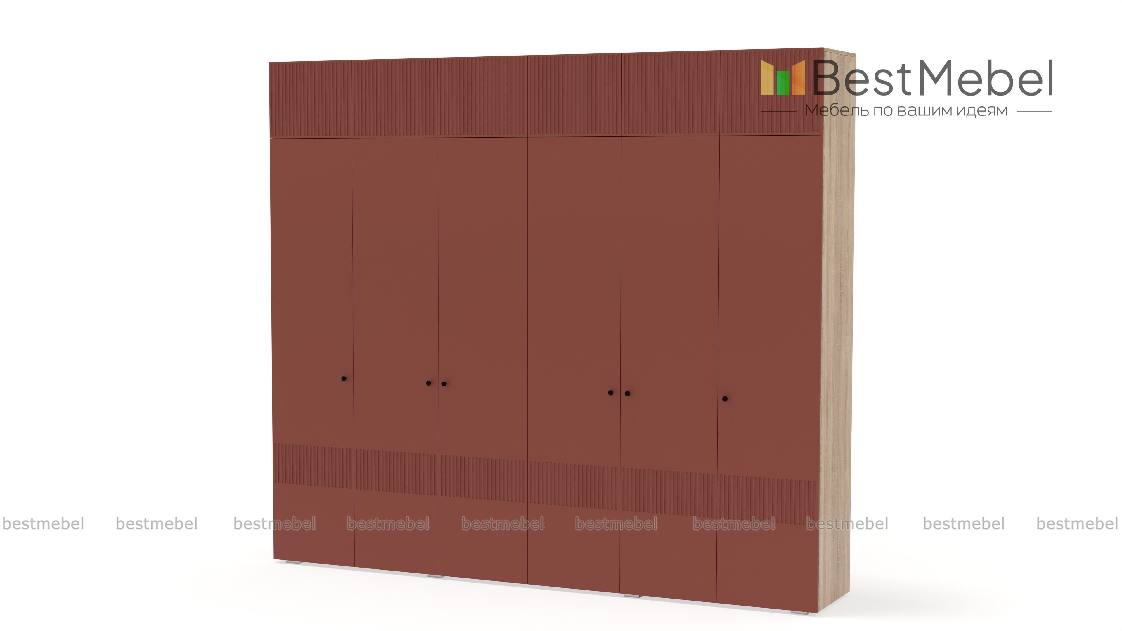 Шкаф распашной Джосс 12 BMS сохранит в порядке гардероб семьи. Шестидверная конструкция с двумя платяными отделениями, расположенными в центре, двумя бельевыми и вместительной антресолью оптимально подходит для хранения одежды и обуви двух человек. Выполненный в комфортной гамме, шкаф имеет стильную рельефную отделку по фасаду. Купить шкаф распашной Джосс 12 BMS вы сможете на сайте нашего интернет-магазина, подобрав нужные размеры, цвет и компоновку.