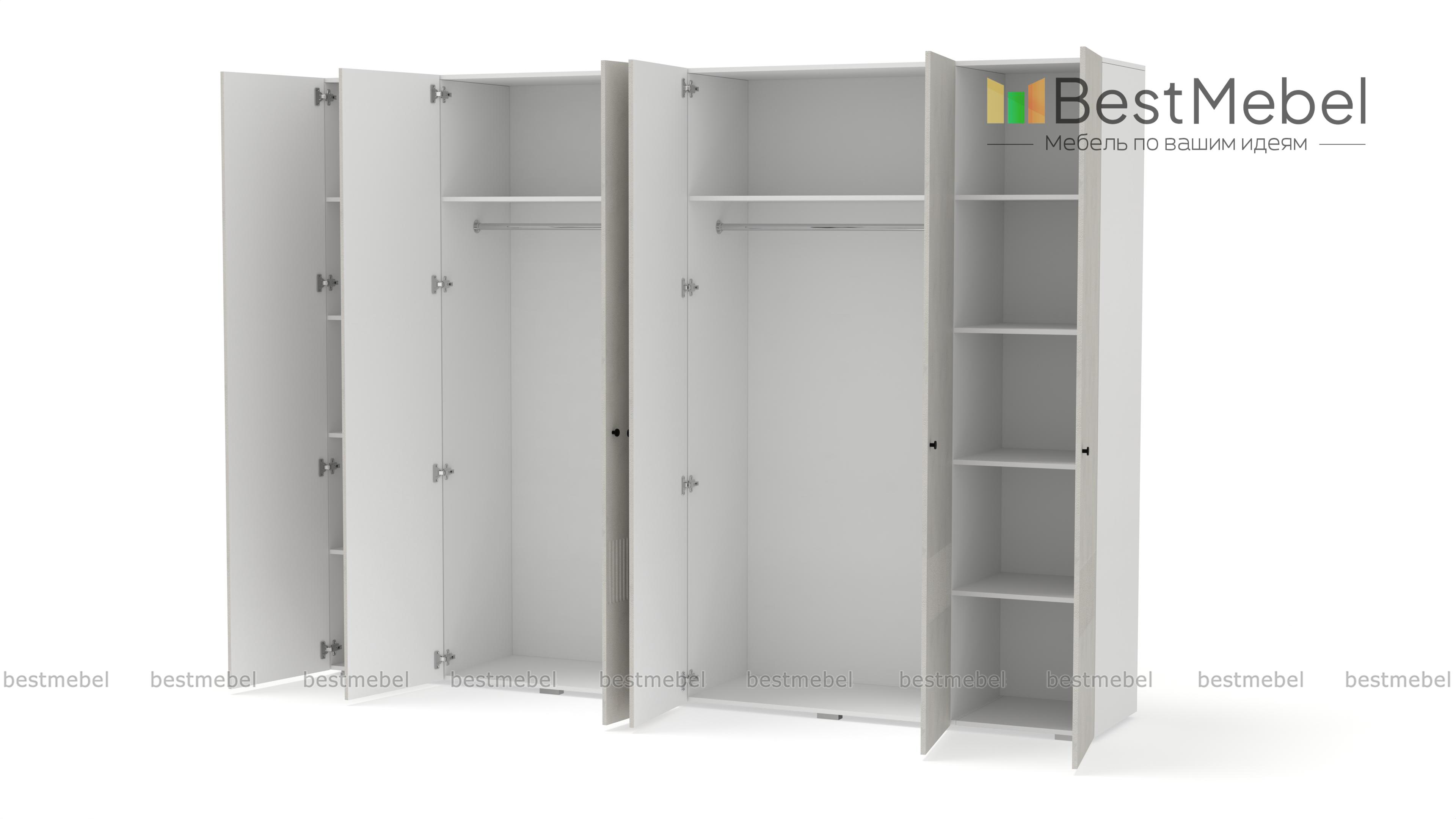 Шкаф распашной Джосс 6 BMS отличается простыми строгими линиями и актуальным декором. Шестидверный шкаф со сплошным цветным фасадом и фрезеровкой прекрасно подходит для спален, прихожих и детских. Два просторных отделения с платяными штангами и верхними полками дополнены однодверными секциями для хранения сложенной одежды и белья. Купить шкаф распашной Джосс 6 BMS вы сможете в нашем интернет-магазине, подобрав размеры, наполнение и подходящую цветовую гамму.