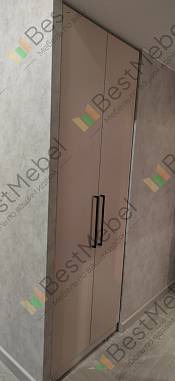 Шкаф распашной Остин Лайт 23 BMS (700х2050х440), заказ 00000204767. Делали ремонт в коридоре и необходимо было заменить два шкафа, прихожую и дверцы на антресолях. Всё заказали здесь. Заказывали оба шкафа Остин через сайт (Лайт 3 BMS и этот Лайт 23 BMS). Самостоятельно поменяли размеры, цвет фасадов (Тэффи L) и цвет самого шкафа (серый), кромку лицевых частей на 2 мм, ручки оставили эти (понравились), петли поменяли на Блюмовские с доводчиками. Внутри поменяли штангу на полки (6 шт), сделали перфорацию, чтобы в процессе эксплуатации можно было переставлять полки на нужную высоту. После оформления заказа на сайте, перезвонила менеджер (минут через 20), еще раз всё уточнила и перепроверила, помогла с точными размерами, чтобы шкаф точно встал в нишу. Всё изготовили быстро. Позвонили и согласовали день доставки. Доставка хорошая, оформляли с поднятием в квартиру. Комплектация полная, всё целое. Выдали документы с гарантией и телефоном компании по сборке. Позвонили туда и через час с нами связался сборщик, согласовали уже с ним дату и время. Отличный парень по сборке мебели. Собрал нам сразу два шкафа и прихожую за 4 часа. Спасибо, что появился такой интернет-магазин! Цена шкафа намного ниже, чем заказывать в компаниях по изготовлению мебели на заказ (узнавали в 5 компаниях) и сроки изготовления в несколько раз быстрее. Спасибо, что появился такой интернет-магазин!