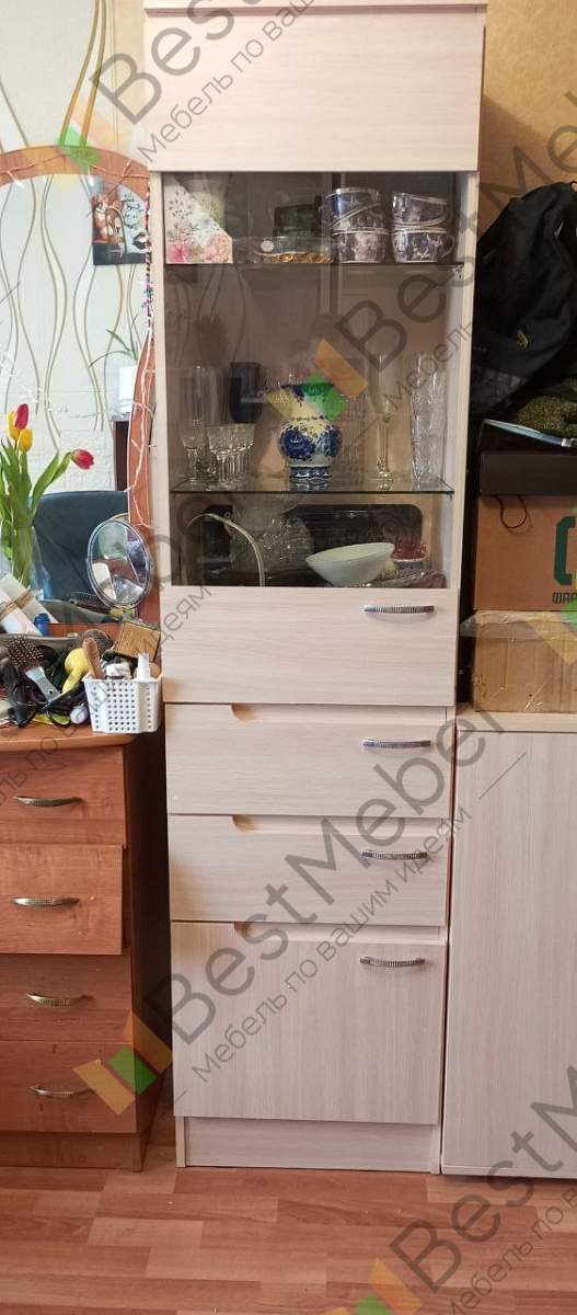 Дочке нужен был узкий шкаф-витрина. После долгих поисков наткнулась на этот шкаф. Очень порадовало, что есть возможность выбрать цвет. Мы, правда, не совсем угадали с расцветкой, но в целом получилось почти то что нужно. Изготовили и привезли быстрее, чем я ожидала. Мы покупкой остались очень довольны, магазин однозначно рекомендую к покупке мебели.