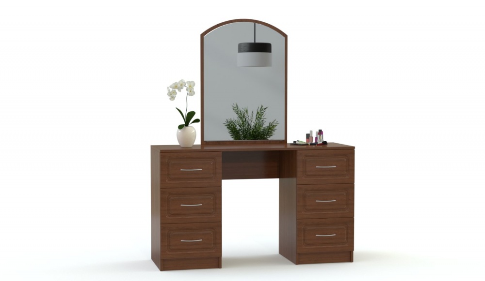 Спальня Ульяна BMS выполнена в классическом стиле и включает в себя все необходимое для комфортного отдыха, ухода за сбой и хранения вещей. Элегантный гарнитур состоит из кровати с фигурно вырезанным изголовьем, прикроватной тумбы, высокого бельевого комода, трехдверного распашного шкафа для одежды и двухтумбового туалетного столика с большим зеркалом. Фасады всех предметов выполняются в древесных оттенках на выбор и декорированы фрезеровкой. Купить спальню Ульяна BMS вы сможете в нашем интернет-магазине по приятной цене.