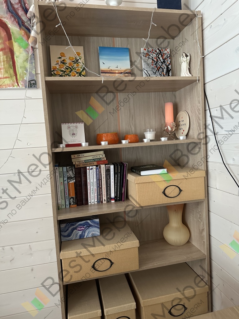 Заказ 00000267739Отличный стеллаж: крепкий, собирается элементарно. Сделали по индивидуальным параметрам, так что он идеально вписался в пространство между шкафами.