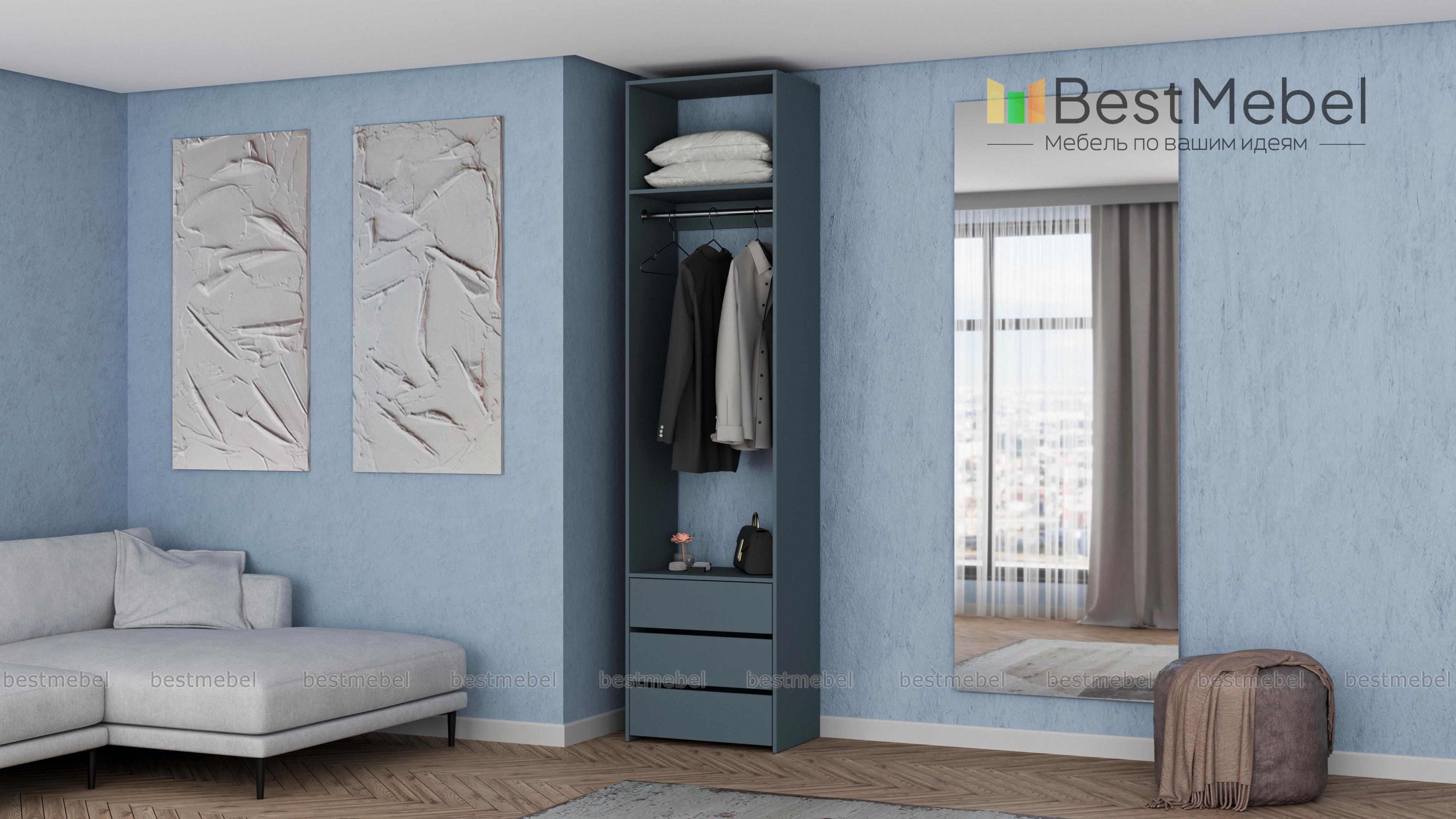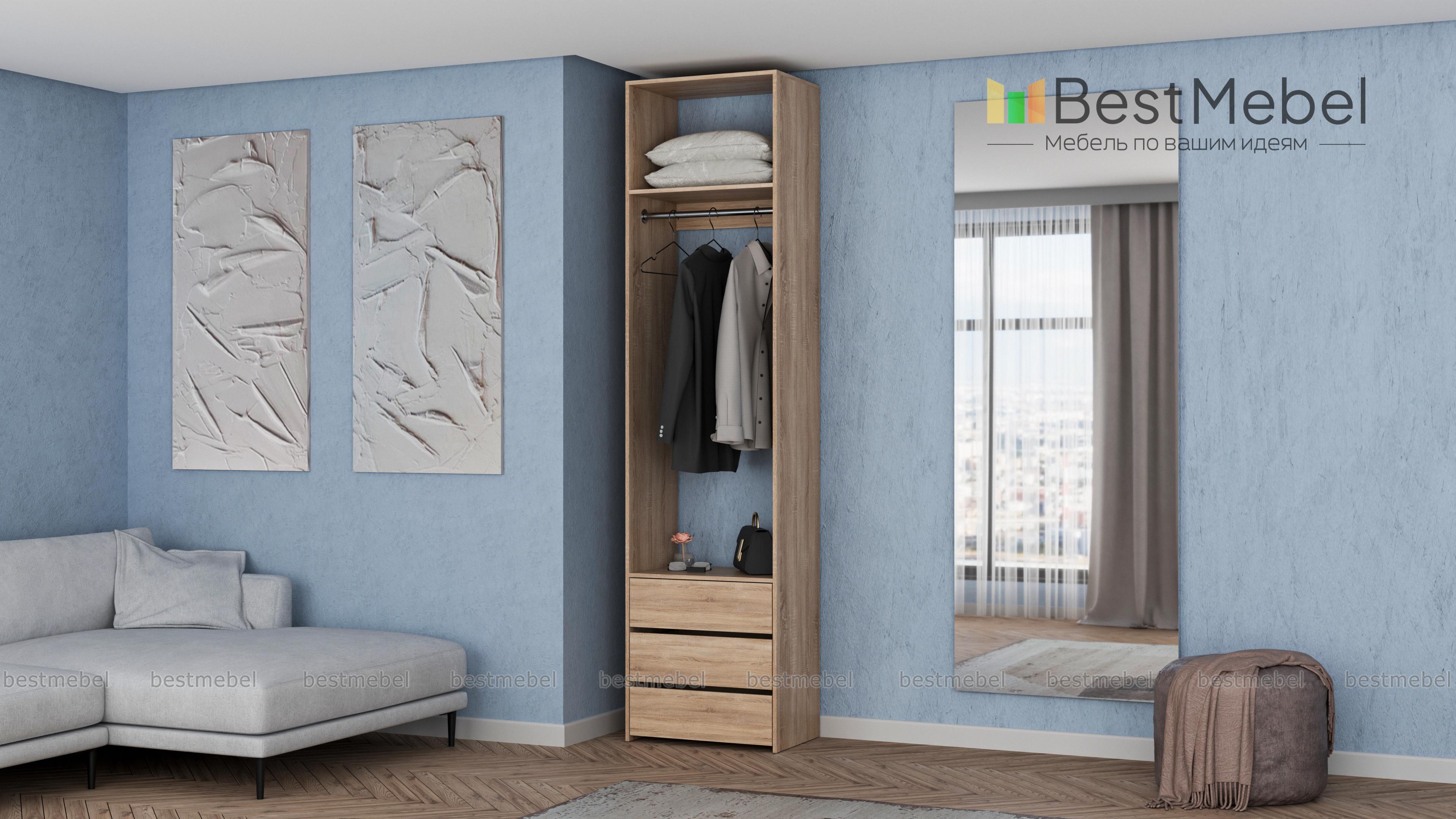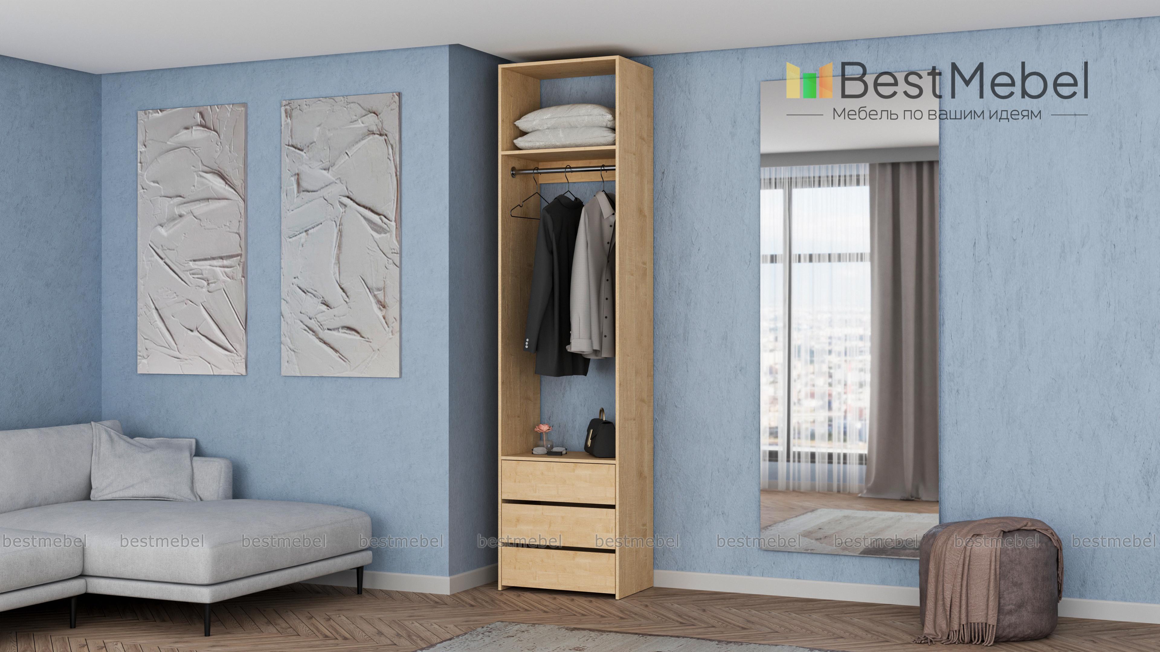 Стеллаж для одежды Мирта 33 BMS решает проблему хранения в маленьких прихожих и гардеробных. Компактная односекционная модель в светлом оттенке эстетично выглядит и не загромождает пространство. Для размещения в удобном доступе одежды, обуви и сезонных аксессуаров узкий стеллаж оборудован полкой, штангой и тремя выдвижными ящиками снизу. Купить стеллаж для одежды Мирта 33 BMS приглашаем в наш интернет-магазин с возможностью выбора цвета и размеров.
