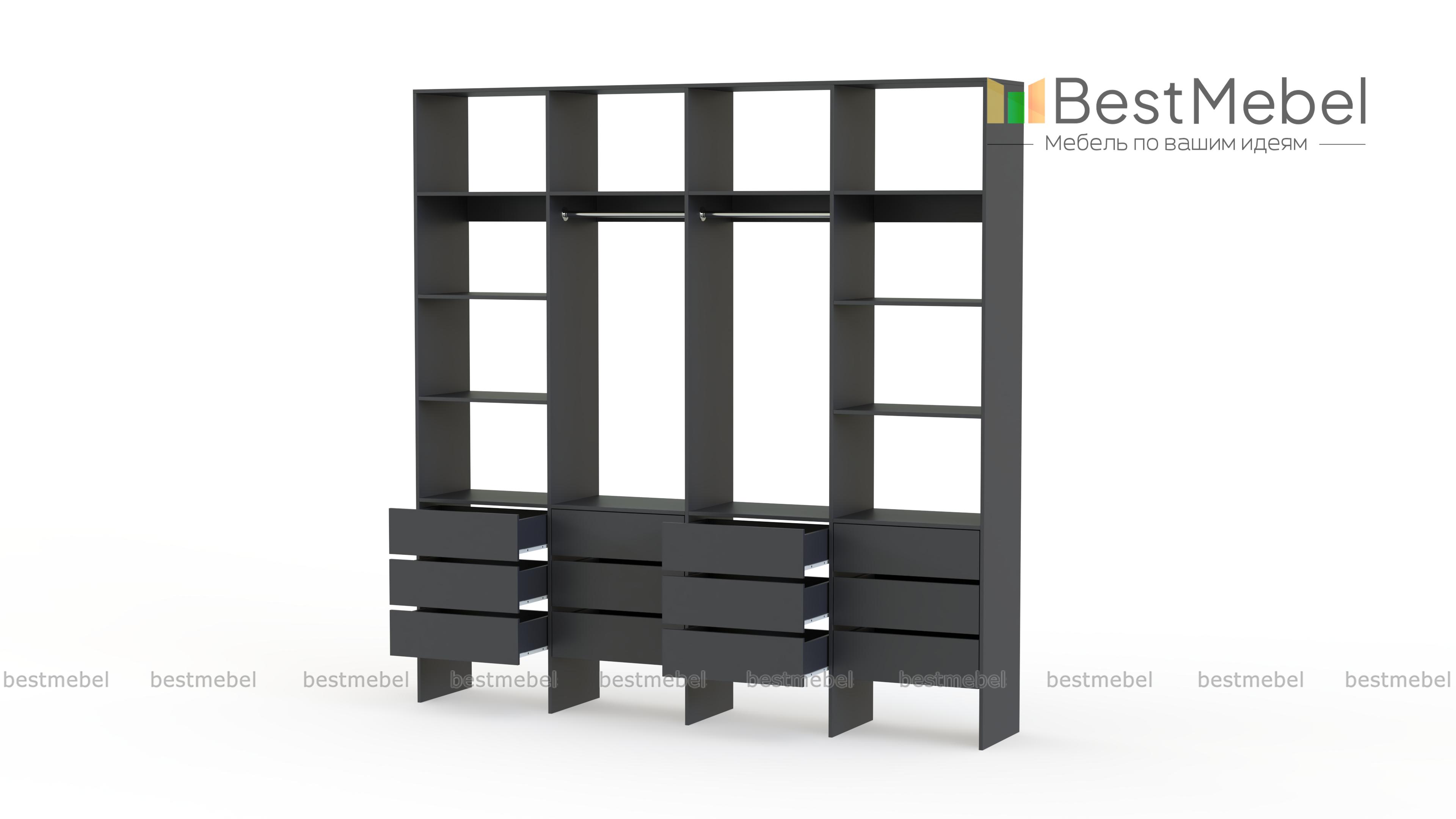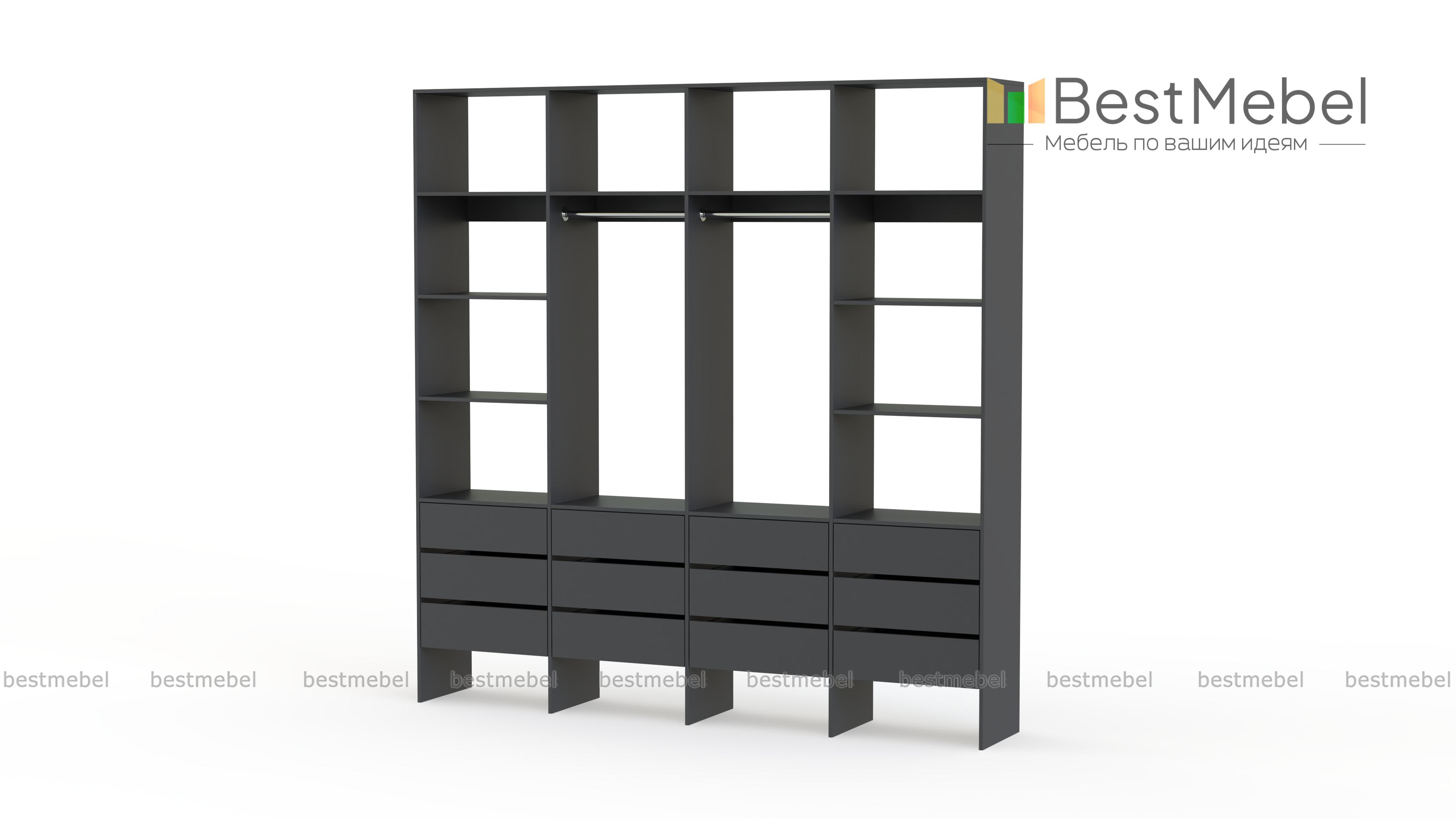 Стеллаж для одежды Мирта 64 BMS — современное решение для вашей прихожей и гардеробной. Конструкция из износостойкой ламинированной ДСП базового оттенка надежна, эстетична и доступна по цене. Практичная комбинация двух штанг, верхних и боковых полок, а также большого количества выдвижных ящиков делает хранение гардероба максимально удобным. Купить стеллаж для одежды Мирта 64 BMS вы сможете на сайте нашего интернет-магазина, подобрав по своему вкусу цвет и размеры.