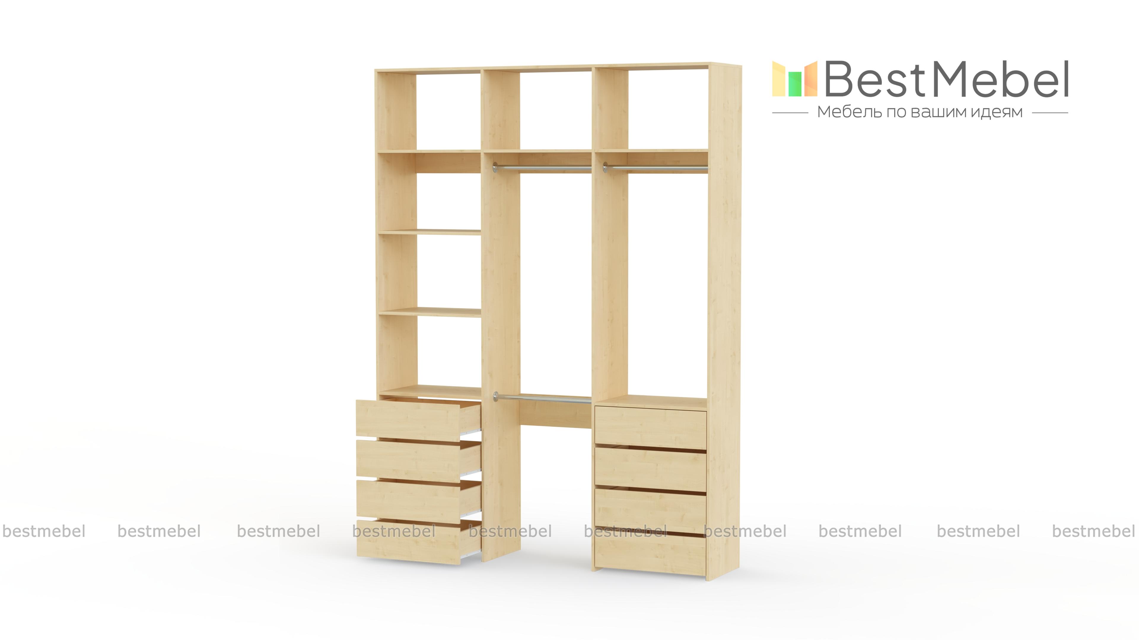 Стеллаж для одежды Мирта 8 BMS поможет создать удобное пространство для хранения в прихожей или гардеробной. Вместительная трехсекционная конструкция состоит из открытых полок, восьми выдвижных ящиков и трех платяных штанг, расположенных на разных уровнях. Лаконичный дизайн и широкий выбор оттенков позволяют вписать стеллаж практически в любой современный интерьер. Купить стеллаж для одежды Мирта 8 BMS, изготовленный по вашим размерам, приглашаем в наш интернет-магазин.