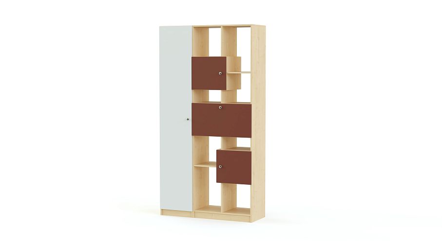 Стеллаж Флай 8 BMS скомбинирован с высоким бельевым пеналом и легко решит проблему хранения большого количества вещей – от одежды до мелочей. Стеллаж оборудован как открытыми секциями разной высоты для книг и декоративных предметов, так и глухими распашными отделениями. Сочетание корпуса древесных тонов с яркими матовыми фасадами выглядит актуально и отлично вписывается в интерьер современной городской квартиры. Купить стеллаж Флай 8 BMS приглашаем в наш интернет-магазин.