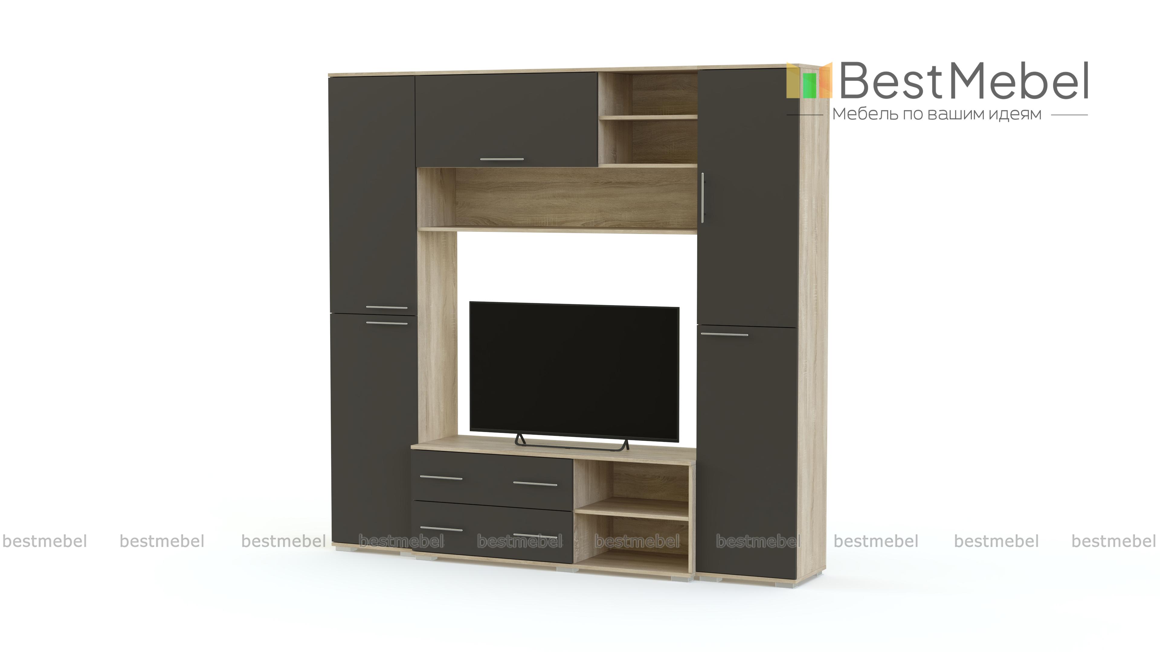 Глянцевая гостиная 19 BMS – это современный дизайн и отличная вместительность благодаря наличию разноплановых отделений. Стильная минималистичная композиция поможет сделать зону отдыха комфортной, а интерьер – актуальным. Модель в контрастном сочетании темных графитовых тонов и цветного фасада оборудована тумбой под ТВ с ящиками и нишами, двумя распашными колонками и просторной антресольной секцией с откидной дверцей и открытыми полками для книг и декоративных предметов. Купить Глянцевую гостиную 19 BMS, подобрав все необходимые параметры, приглашаем недорого в наш интернет-магазин.