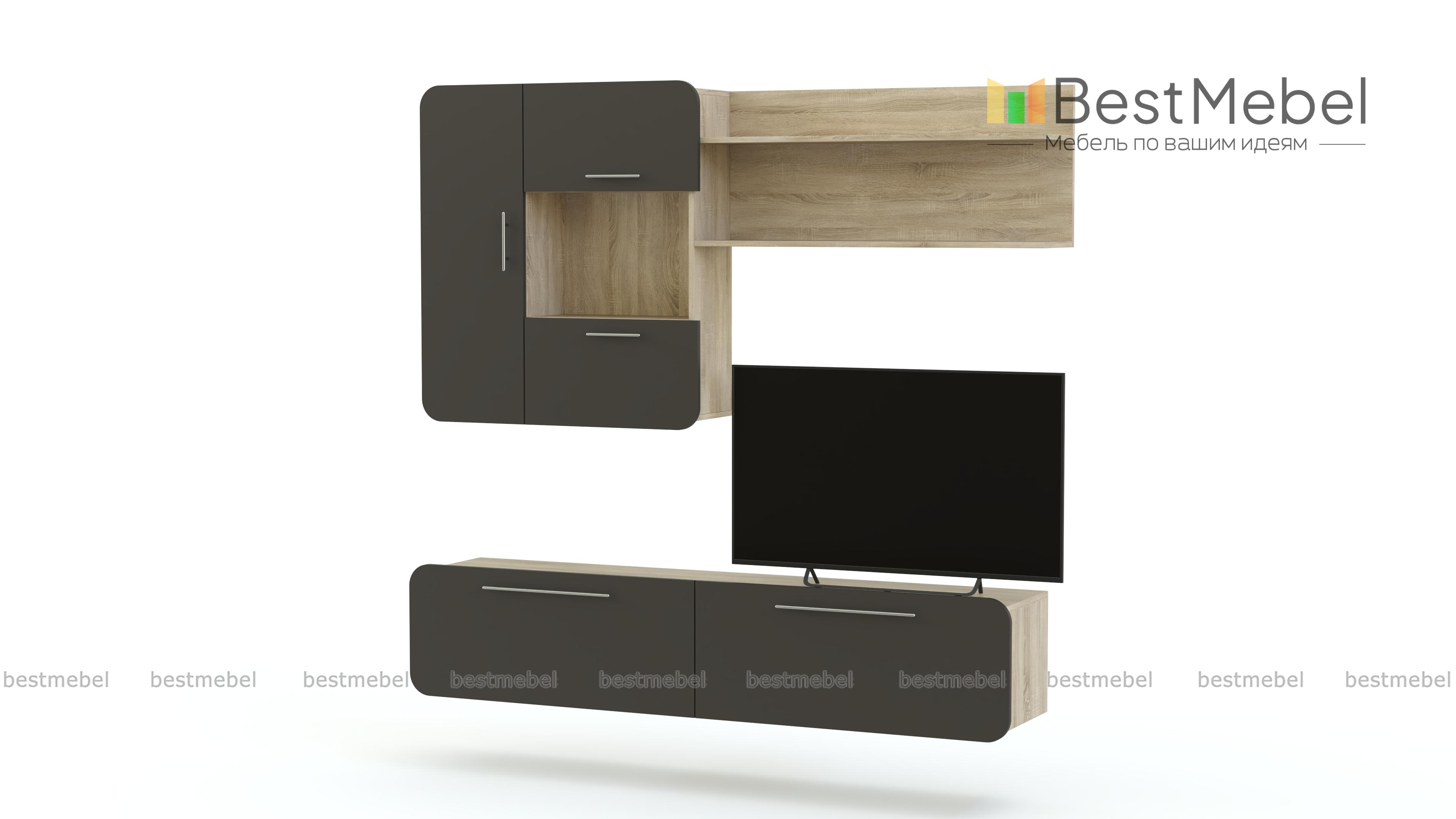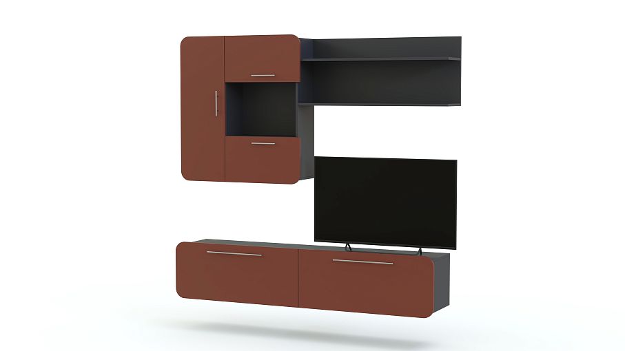 Стенка Модерно 10.1 BMS не займет много места благодаря подвесной конструкции, а отдельные модули вы сможете расположить по своему вкусу для максимально эффектной композиции. В комплект входят тумба с двумя ящиками, навесной шкафчик с распашным отделением, ящиками с откидными дверцами и нишей и панель с открытыми полками. Матовые фасады устойчивы к повреждениям и просты в уходе. Купить стенку Модерно 10.1 BMS вы сможете в нашем интернет-магазине, подобрав оптимальное цветовое сочетание.