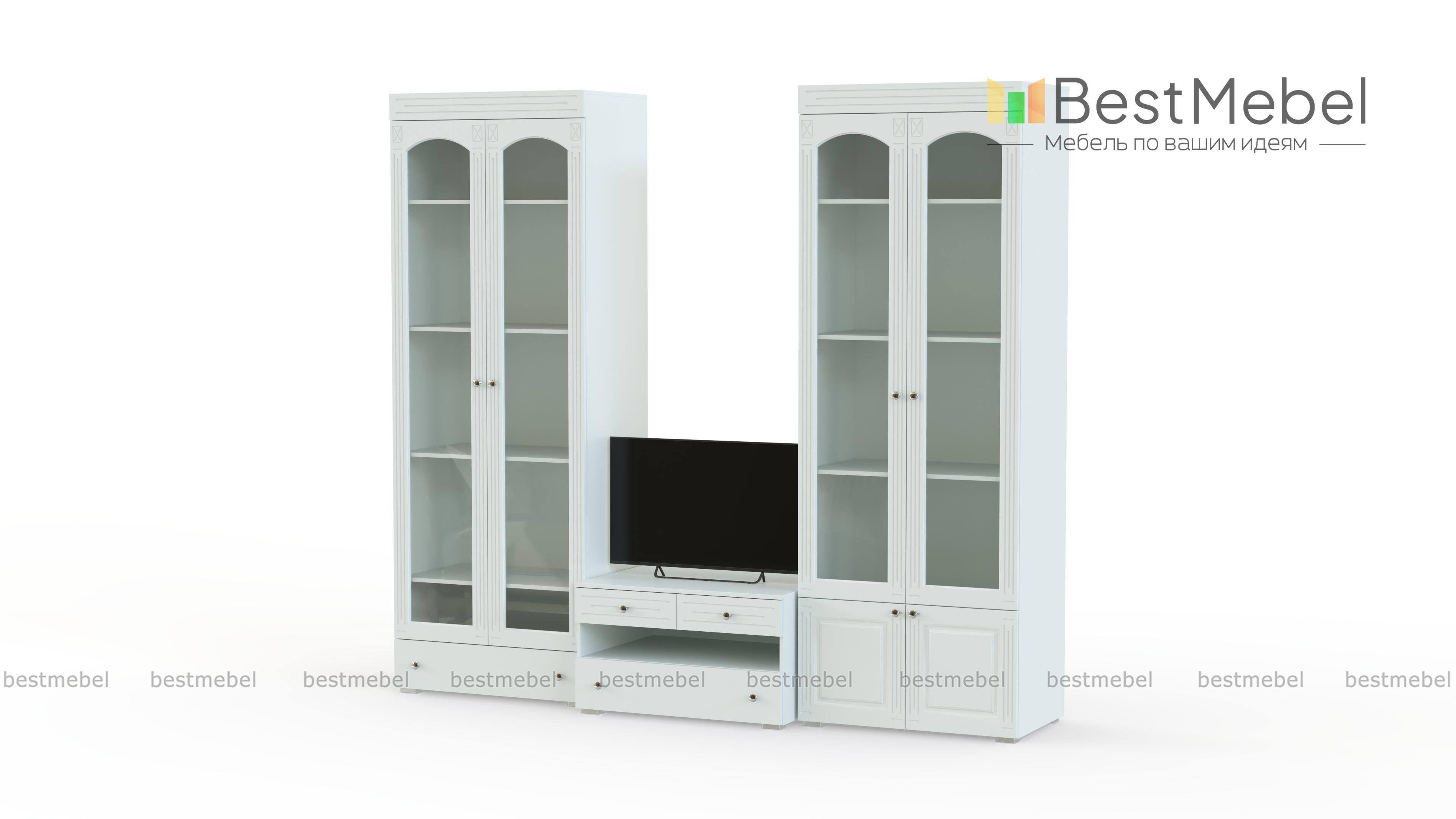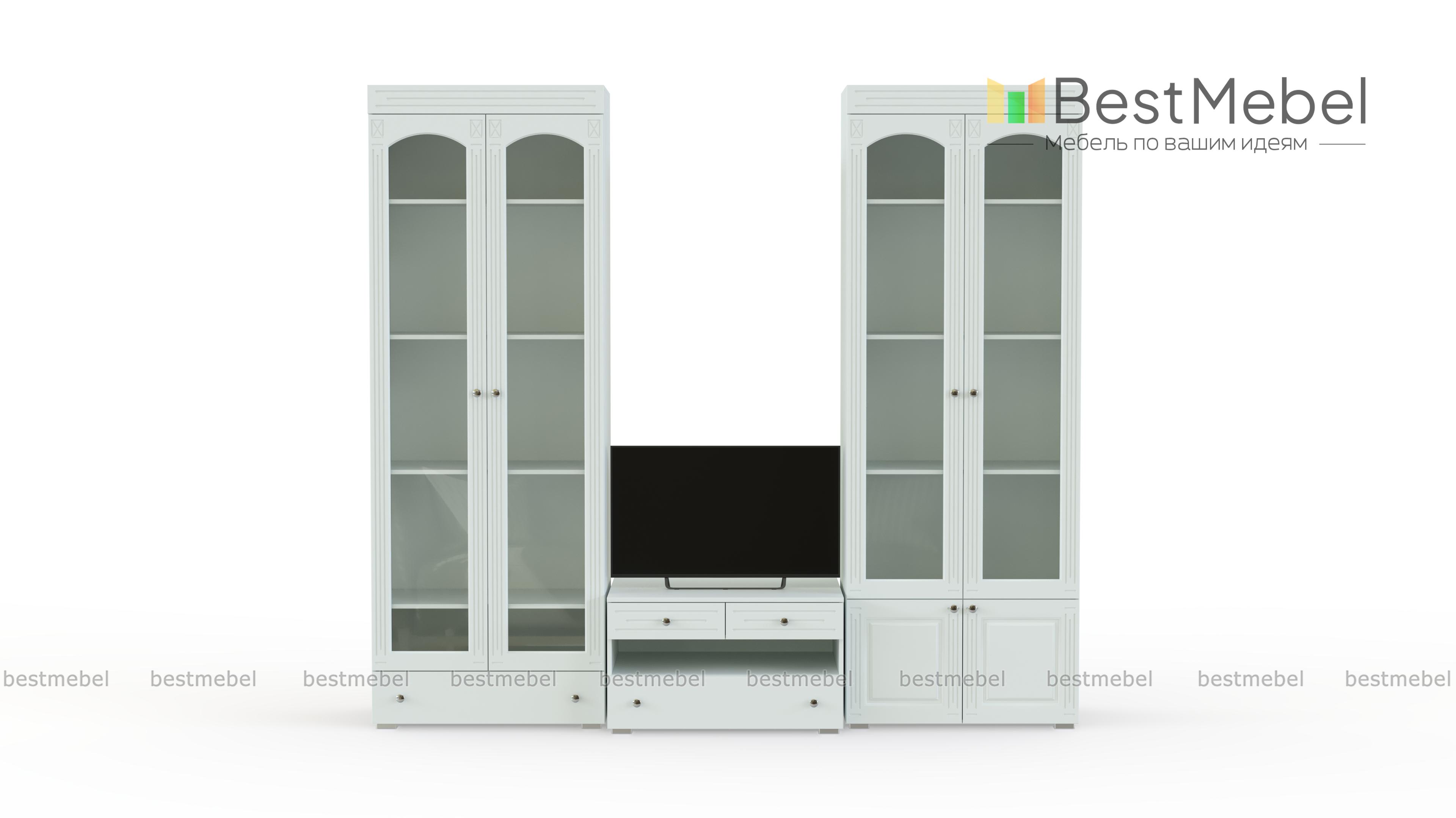 Стенка Маргарет BMS сочетает в себе практичность конструкции и элегантный дизайн в классическом стиле. Модульный набор для гостиной включает в себя широкую низкую тумбу под аппаратуру с выдвижными ящиками и нишей, вместительный платяной шкаф с ростовыми зеркалами на фасаде и две витрины. Выполненные в насыщенных темных тонах, предметы декорированы по фасаду фрезеровкой. Купить стенку Маргарет BMS для уютного и респектабельного интерьера приглашаем в наш интернет-магазин.