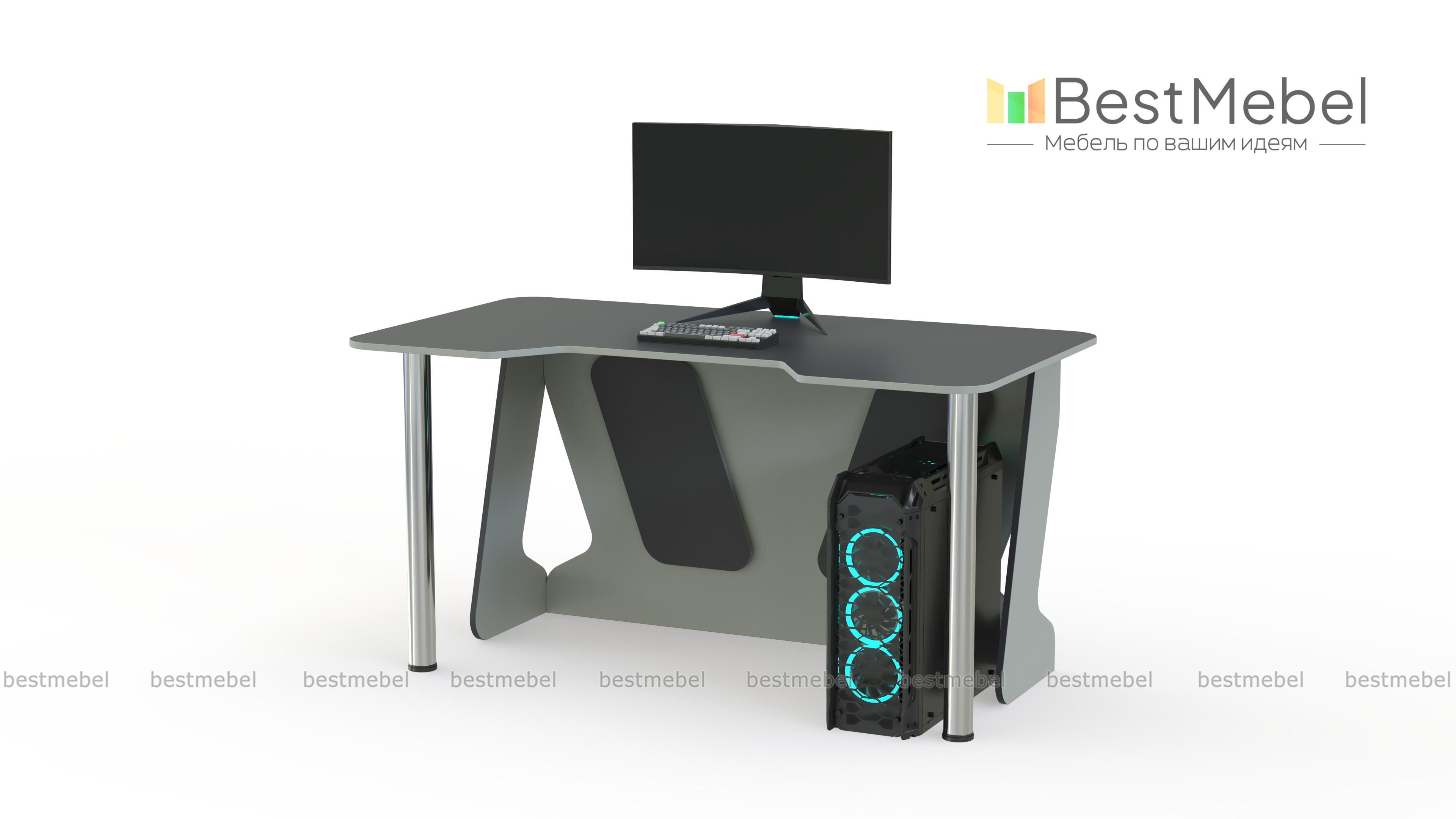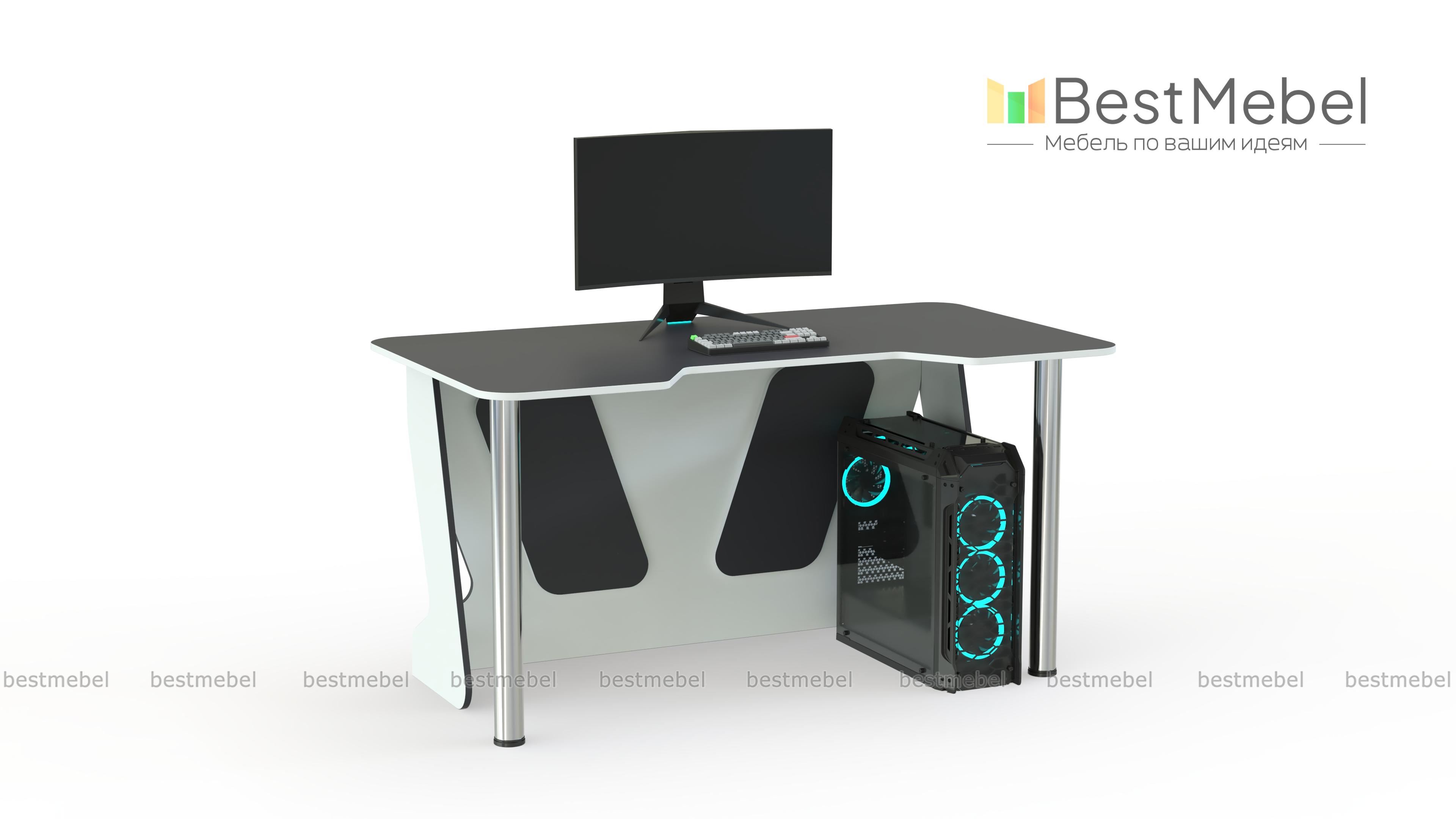 Геймерский стол Финн-3 BMS – это эффектная модель в черно-белой гамме с комбинированными опорами – из ЛДСП и регулируемыми хромированными. Просторная столешница скруглена по углам и имеет трапециевидный вырез в передней части, который обеспечивает комфортное положение тела во время игры и снижает нагрузку на локти. Легкость и надежность конструкции придает задняя стенка с декоративными вырезами. Купить геймерский стол Финн-3 BMS приглашаем в наш интернет-магазин с выбором цвета по каталогу.