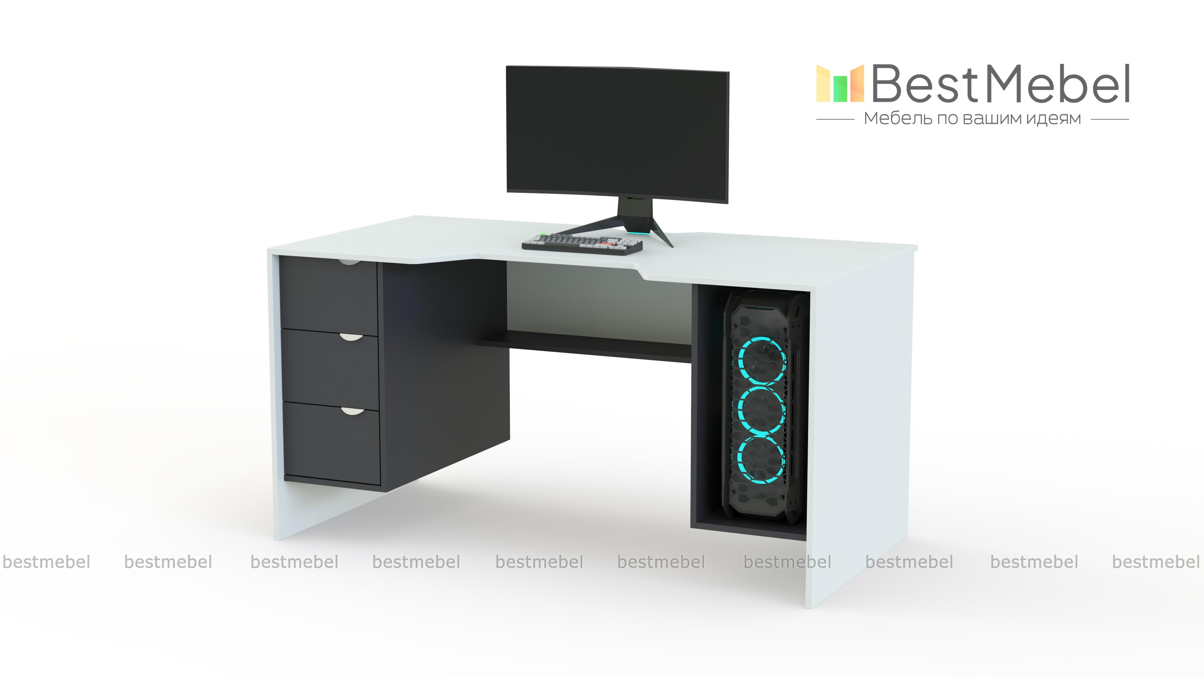 Игровой стол Стрит-1 BMS станет практичным выбором для геймеров и тех, кто проводит за компьютером долгое время. Двухцветная современная модель оборудована просторной столешницей с эргономичным вырезом переднего края и удобной выемкой под провода. Тумба с выдвижными ящиками, книжная полка и секция под системный блок имеют подвесную конструкцию, визуально облегчая конструкцию. Купить игровой стол Стрит-1 BMS приглашаем в наш интернет-магазин с возможностью изменения цвета и размеров.