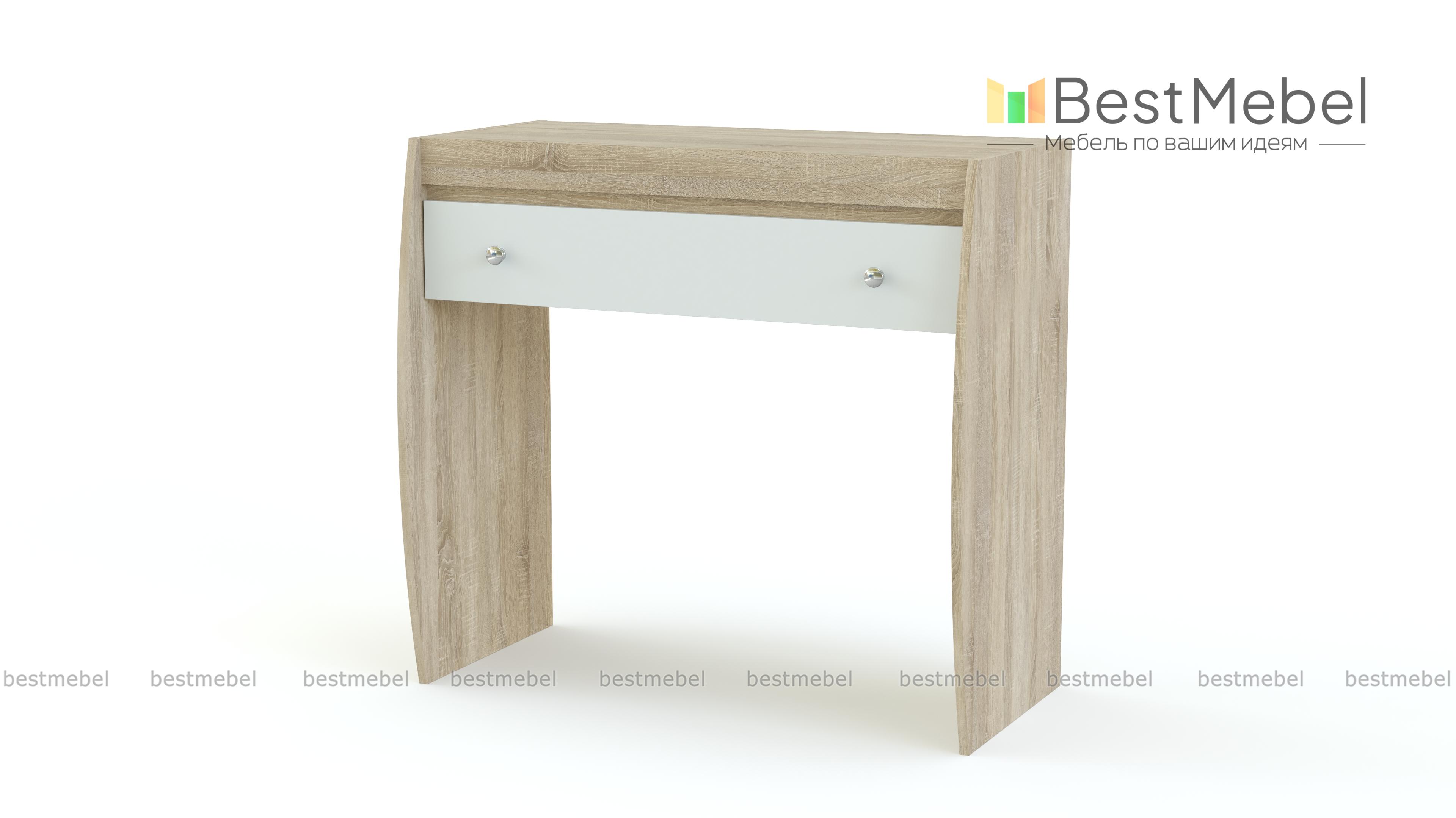 Туалетный стол Cseno BMS в стиле модернизм – это интересное решение для Вашей комнаты и непосредственно личного уголка по наведению красоты. Модель имеет большой и вместительный выдвижной ящик. Он в свою очередь оборудован оригинальными ручками. Боковые панели изделия имеют изогнутый вид. Купить необычный туалетный стол Cseno BMS можно на нашем сайте по приятным ценам.