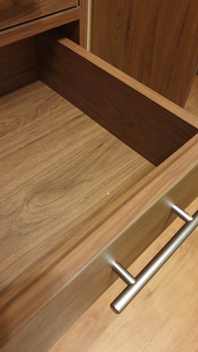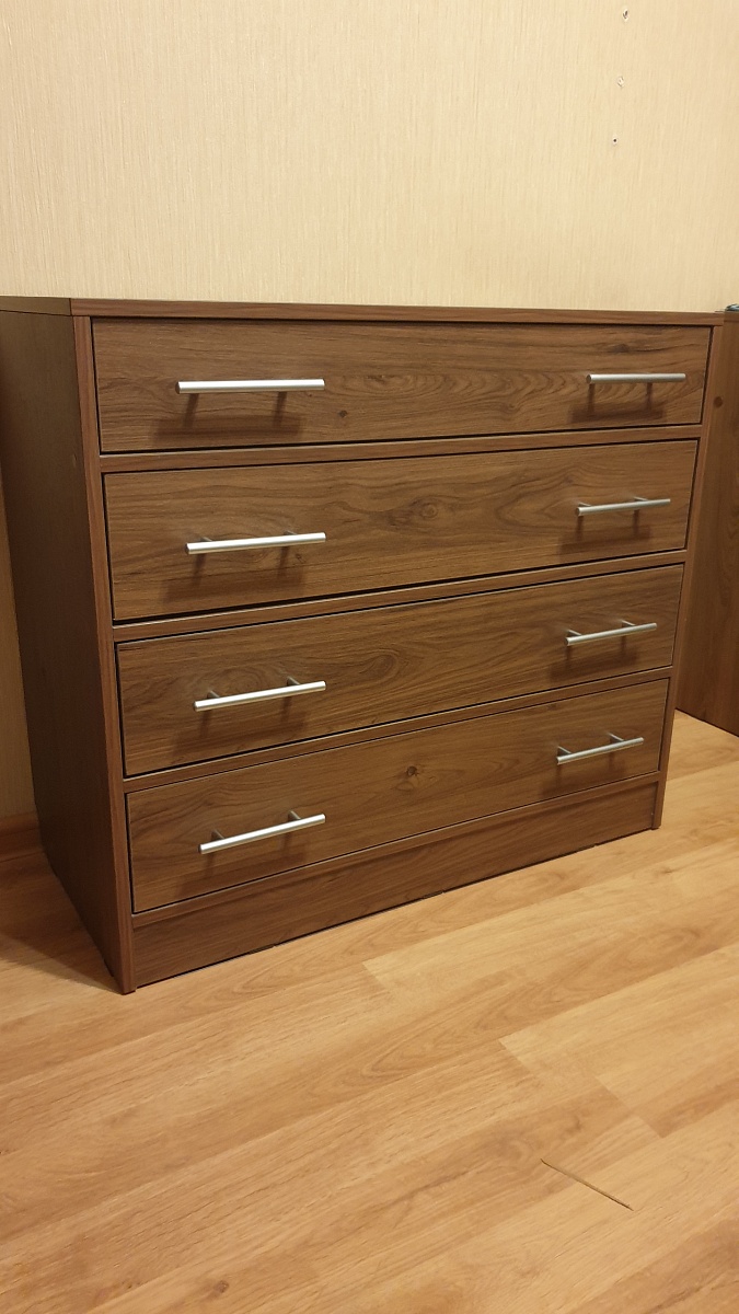 Комод хороший, привезли в срок, собирали сами. В офисе продаж предложили усилить дно ящика, но пожалела, т.к панель из ЛДСП очень уменьшает объём ящика.