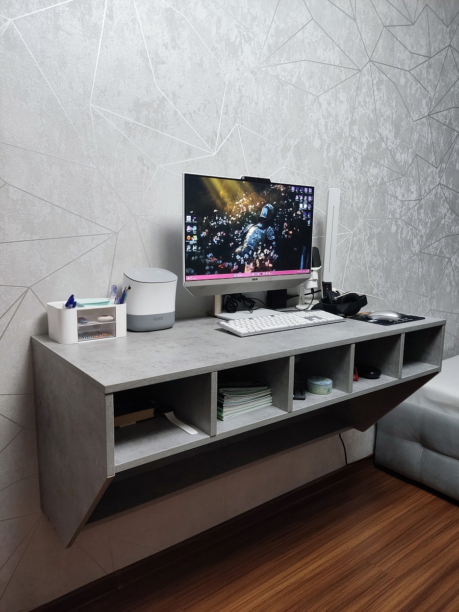 Заказ 00000298149, изделие Навесной письменный стол Хельга 1 BMS (1200х504х500)Дочке-подростку искали навесной письменный стол, но не просто плоскую доску, а функциональный с полочками. Стол МЕЧТЫ нашли на сайте Бест-Мебель. Особенно понравилось то, что при помощи программы-конструктора на сайте можно сконструировать мебель по своим размерам, цвету и прочим параметрам (добавить полочки или убрать их). Также съездили в мебельный торговый центр нашего города, где есть представитель компании Бест-Мебель. Там нам подтвердили, что заказать мебель сконструировав на сайте – это реально.В реальном виде мы этот стол на видели, отзывов на него на сайте не было. Но мы рискнули и заказали. Порадовало то, что полную оплату можно произвести после получения и проверки заказа. Это снижает риски получения некачественной продукции. За это отдельно спасибо Бест-Мебель!