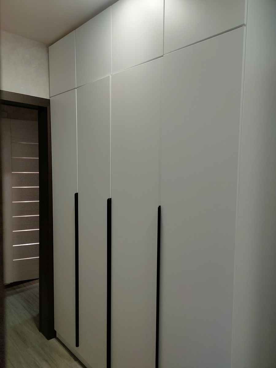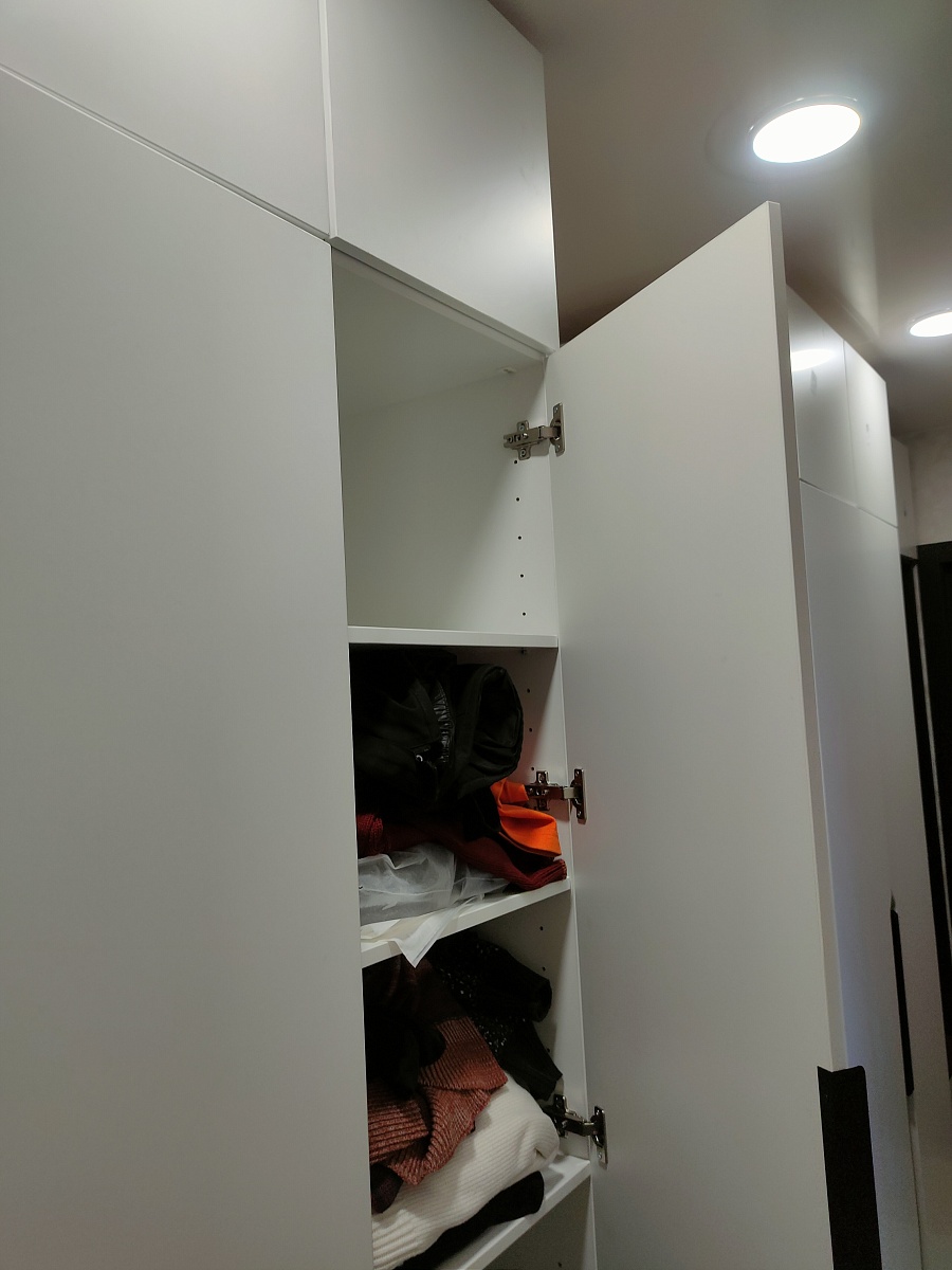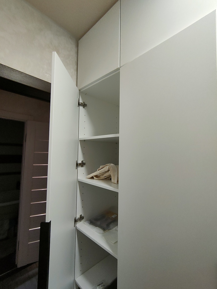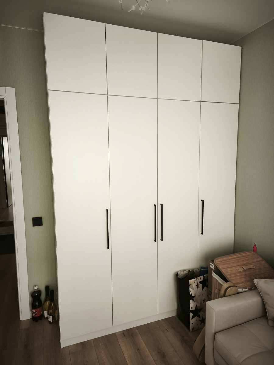 Заказ 00000275042, шкаф распашной Остин Лайт 6 BMS (1700х2500х500). Это не первый мой шкаф с БестМебель. Классно, что можно придумать свое наполнение, очень удобно. В целом качество нормальное, кое-где есть микро сколы, но их видно только при ближайшем рассмотрении, но не при ежедневном использовании. Фурнитура приемлемая, только на верхних полках мы просили не устанавливать пуш-ту-опен механизм, иначе дверцы немного оттопыриваются. Но поскольку туда убраны редко используемые вещи, это не проблема. Так что могу рекомендовать, особенно если требуется какое-то нестандартное исполнение.