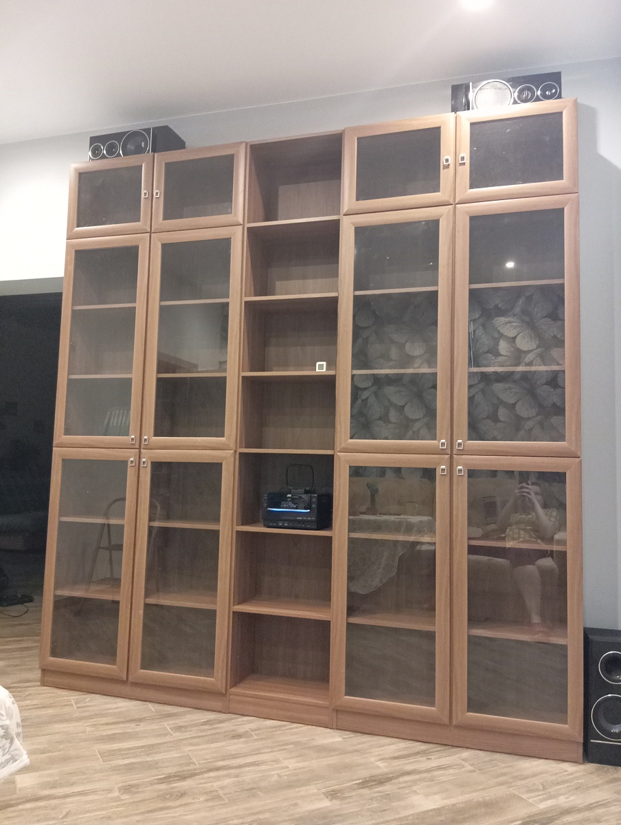 Заказываем мебель здесь более 10 лет, покупали кровати детям на замену, книжные шкафы, полки, три шкафа-купе. Крупную мебель заказывали со сборкой, книжные полки и шкафы собирали сами - все отлично спроектировано, ни разу не было недовложений и нестыковок. Доставка всегда вовремя, предварительно звонят.  На фото последний заказ, когда потребовалось расширить пространство для книг, поставили довольно оригинальную полку дополнительно под телевизор (получилось две полки одна поверх другой вместе как единое органичное целое)