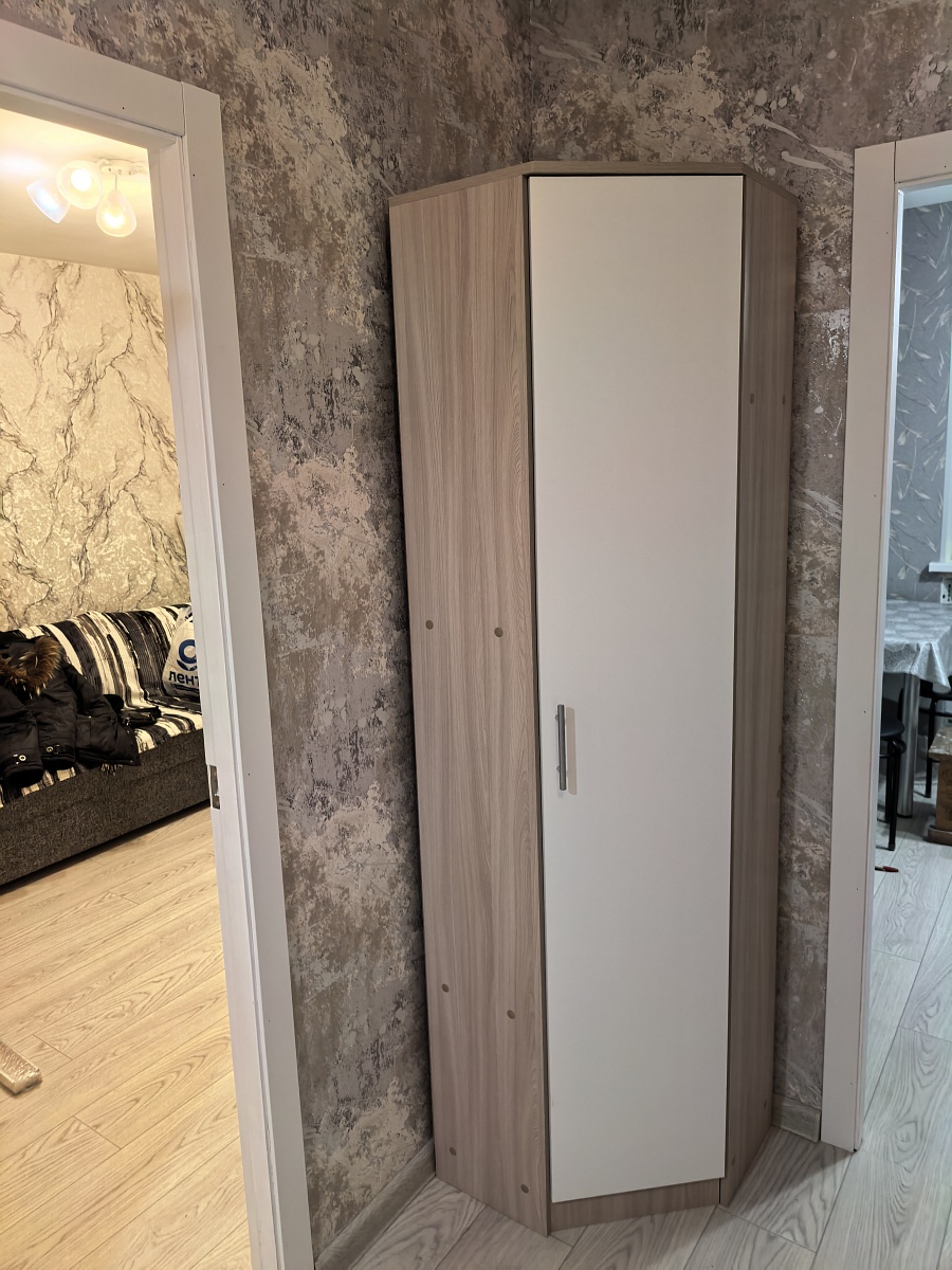 Долго искали шкаф подходящего размера, остановились на угловом.  Несмотря на компактные размеры- вместительный, качественные материалы и фурнитура. Удобный в использовании. Экономит пространство- для небольших комнат, можно подогнать под свои размеры. Доставка вовремя. В назначенный день приехали два сборщика с инструментами, собрали быстро . Сборкой осталась довольна, спасибо! Получился отличный шкаф. Покупкой довольны.