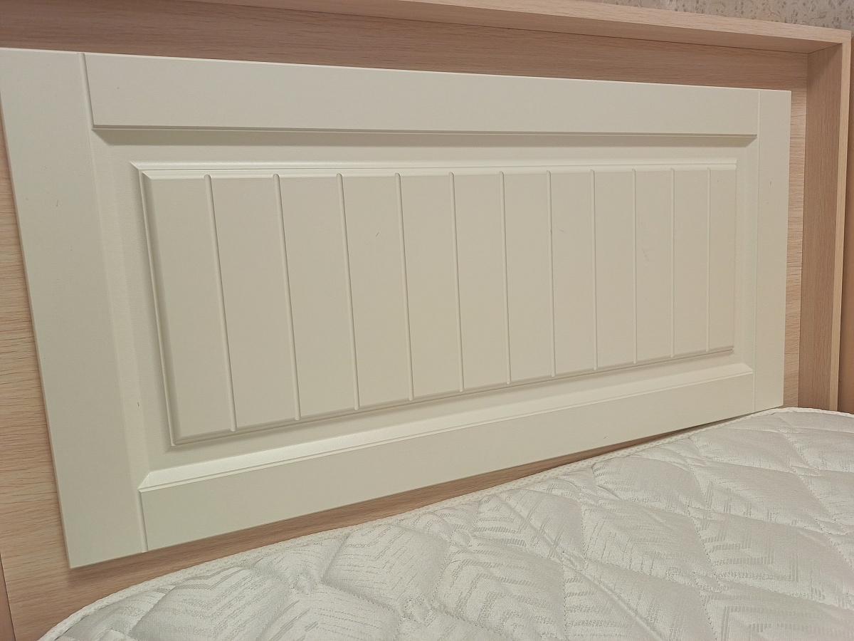Кравать доставили в оговорённые сроки. Кровать красивая, светлая. Комплектующие все на месте.Заказ 00000296793
