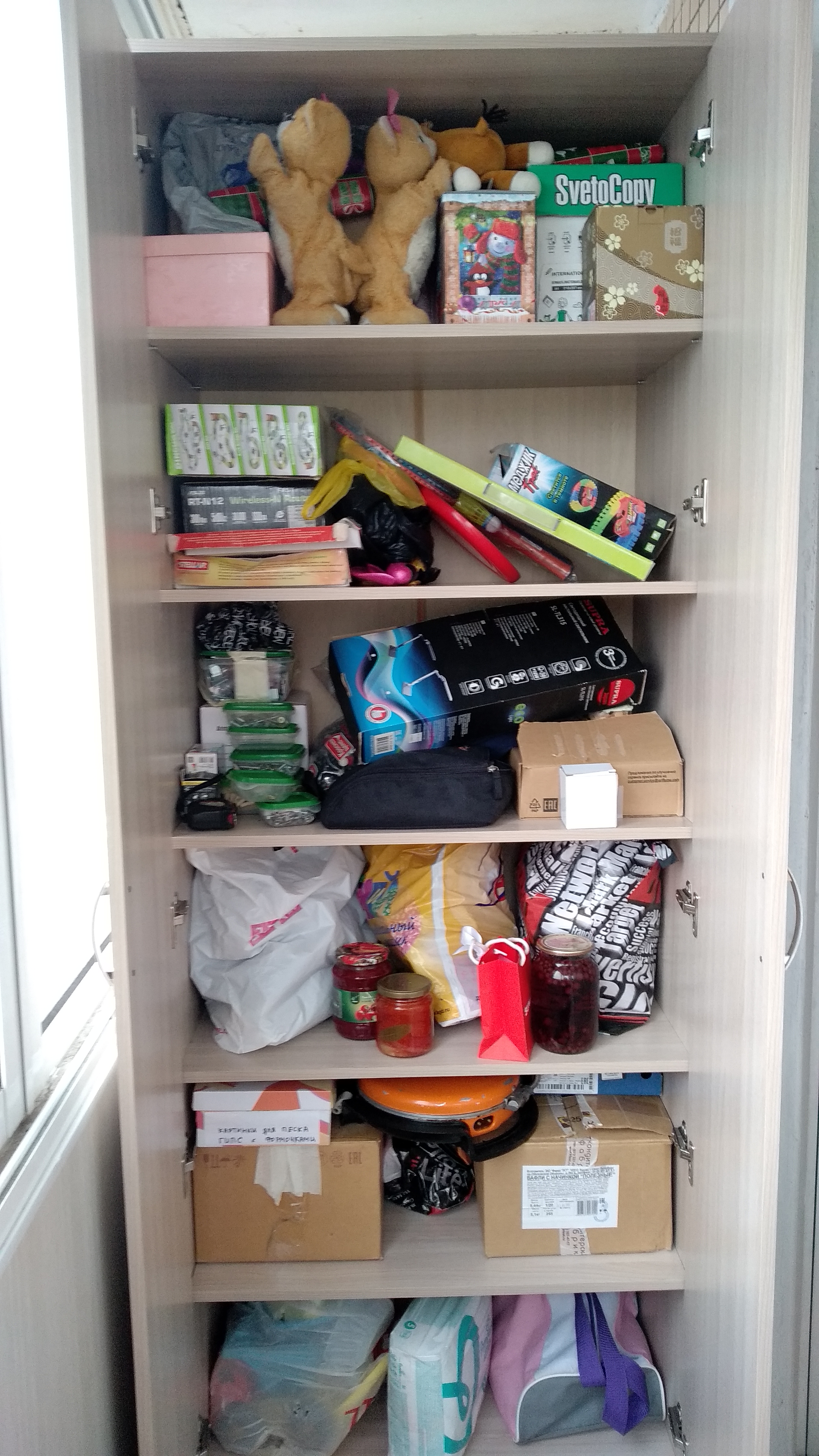 Заказал шкаф. Размеры нестандартные: 1100х2400х400. Дополнил комплектацию тремя полками. Получил три дополнительных ниши / один ярус  относительно стандартного шкафа.