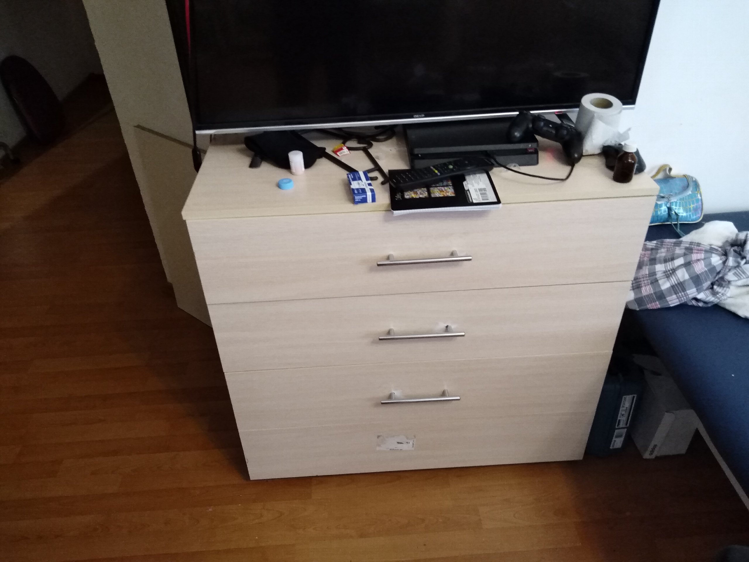 Комод замечательный, привезли вовремя! Цвет и размеры совпадают! Минус то что наклейки очень плохо снимаются, они очень большие, приходится оттирать! Цена и качество соответствует