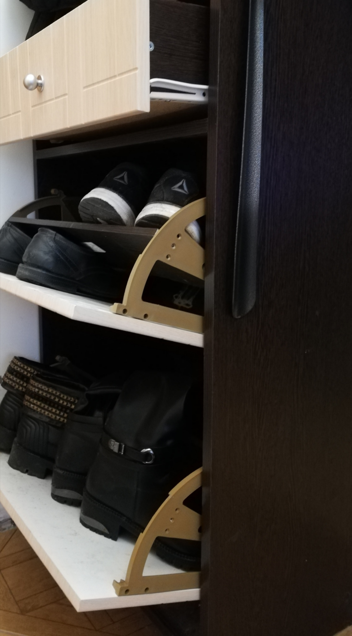 Качественная, красивая обувница, хорошо вписалась в интерьер прихожей